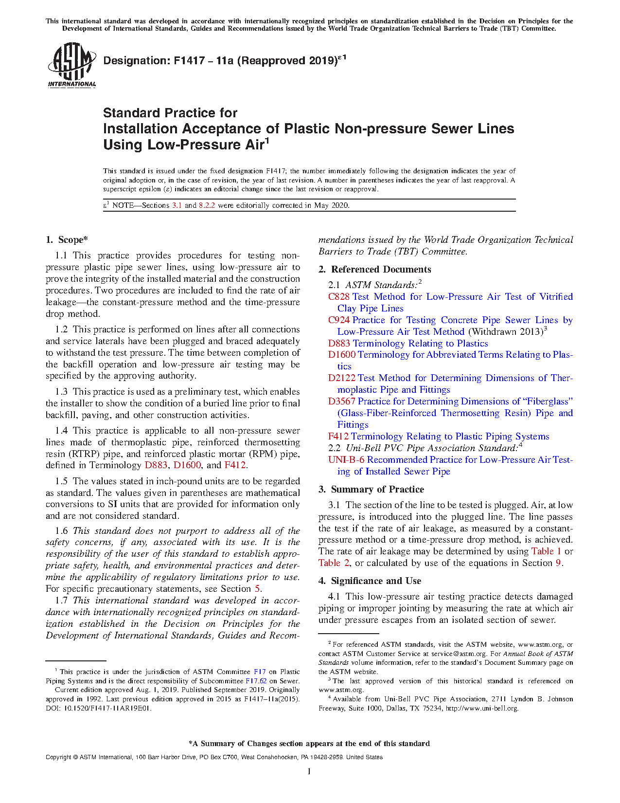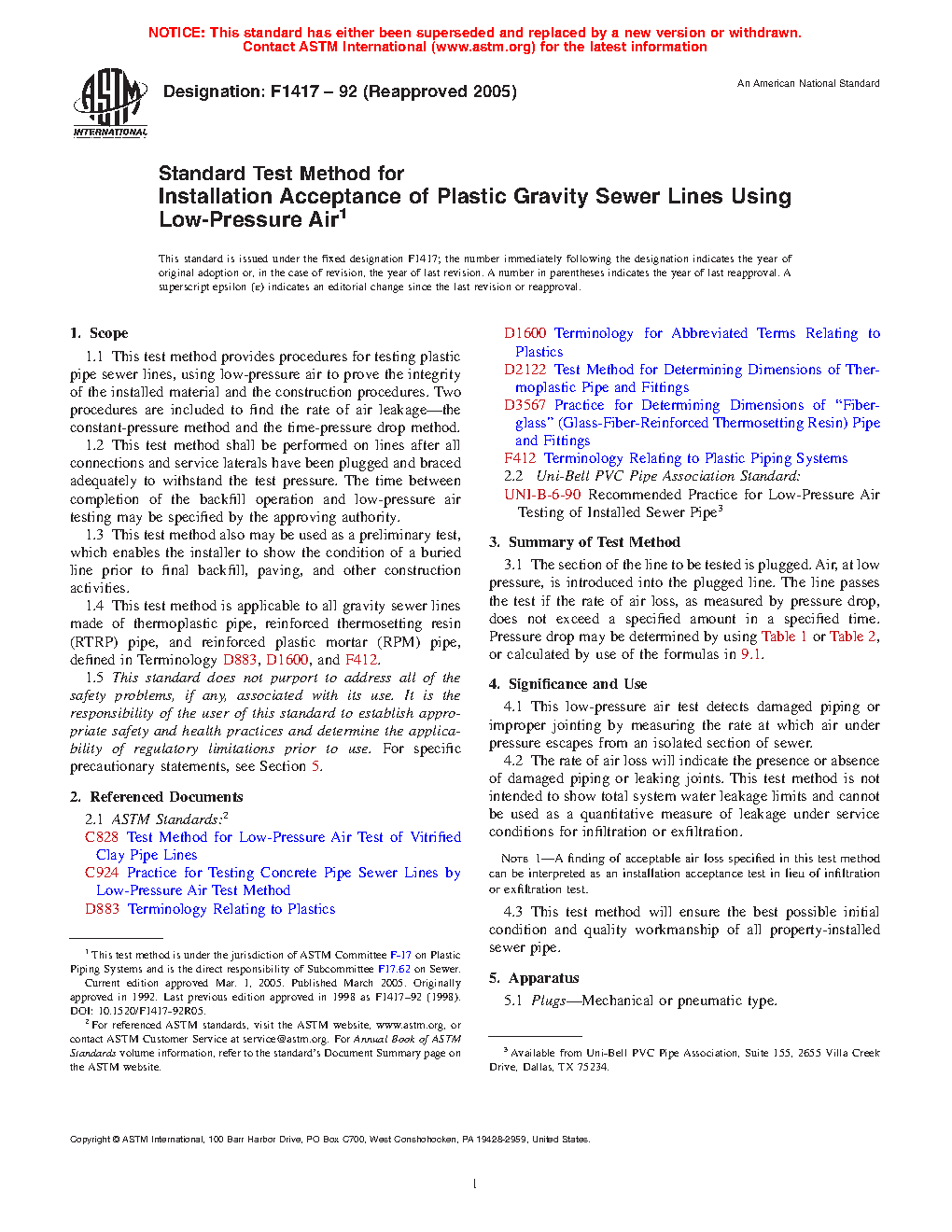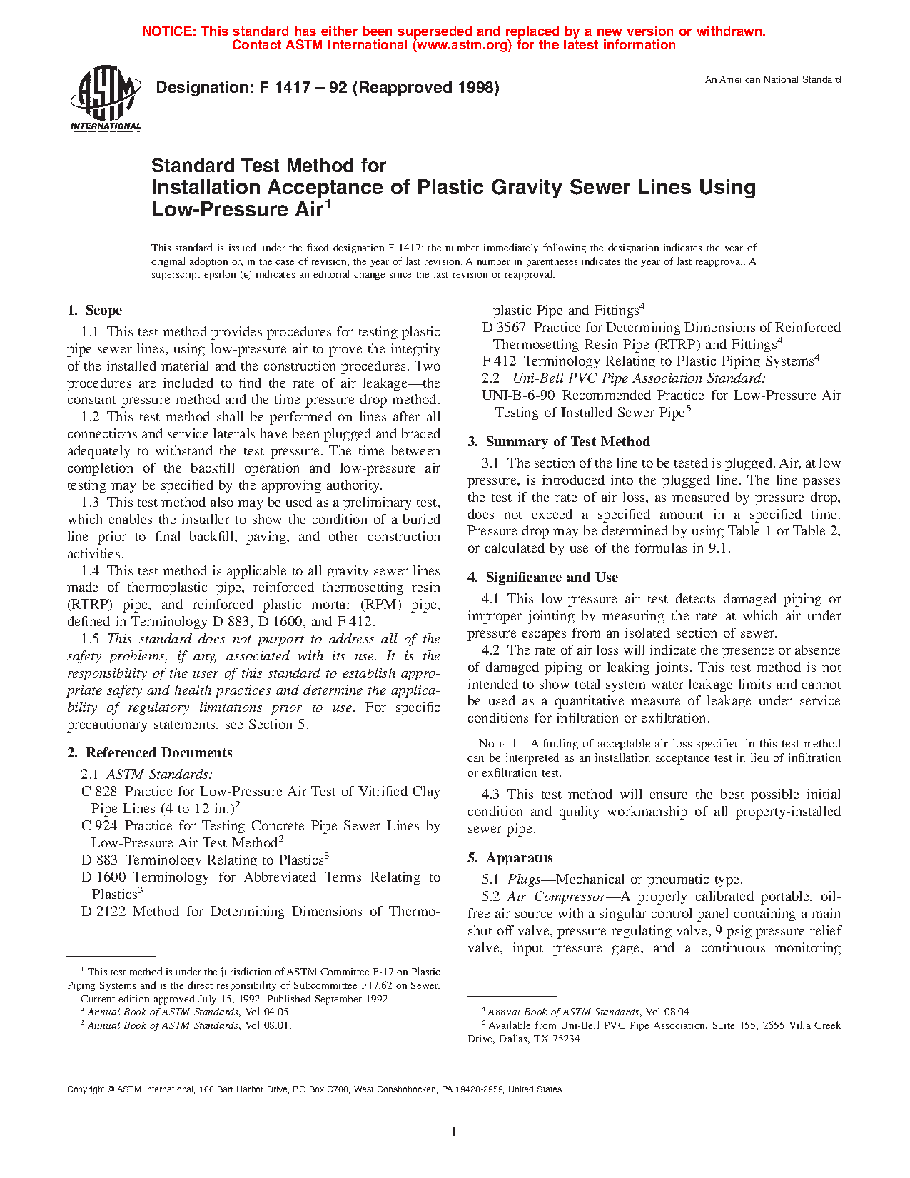 1.3 This practice is used as a preliminary test, which enables the installer to show the condition of a buried line prior to final backfill, paving, and other construction activities.