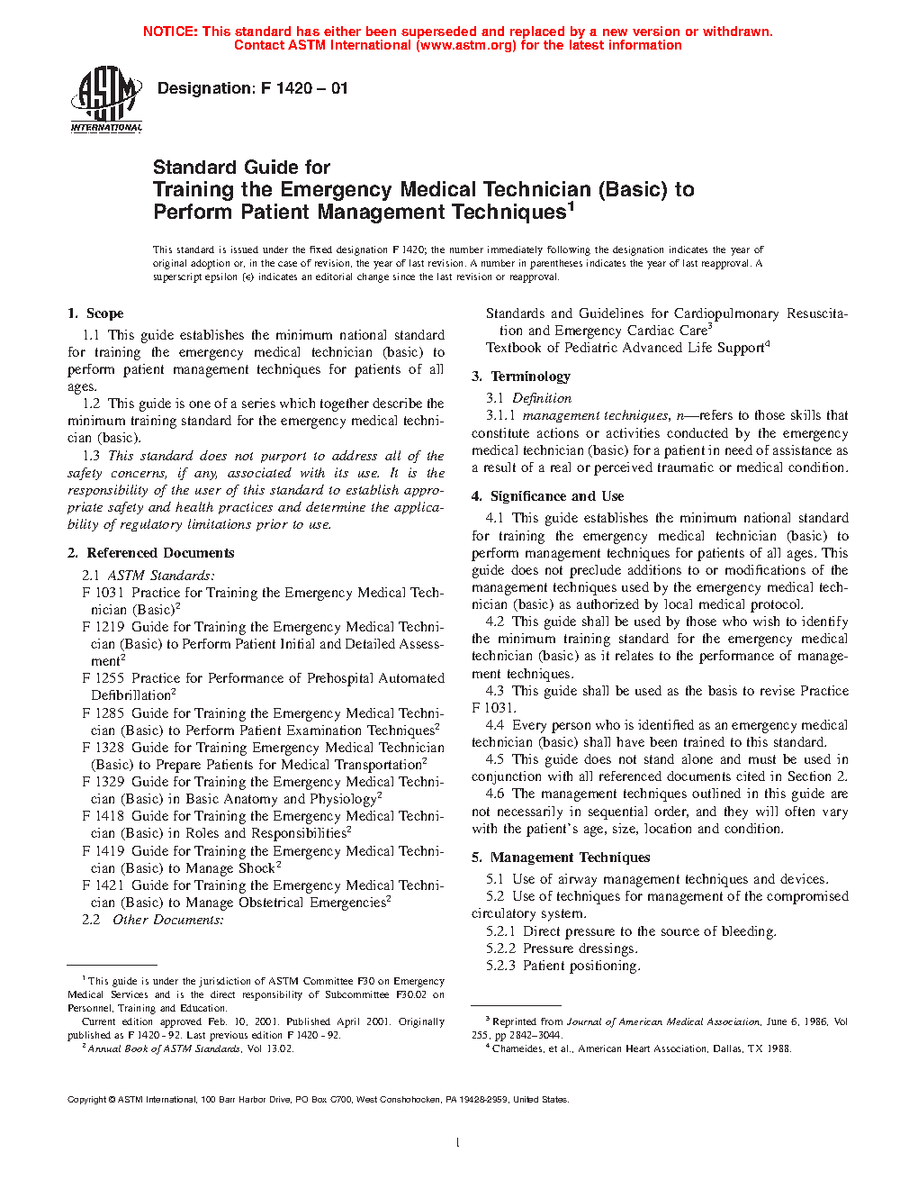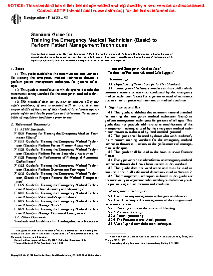 Standard Guide for Training the Emergency Medical Technician (Basic) to Perform Patient Management Techniques