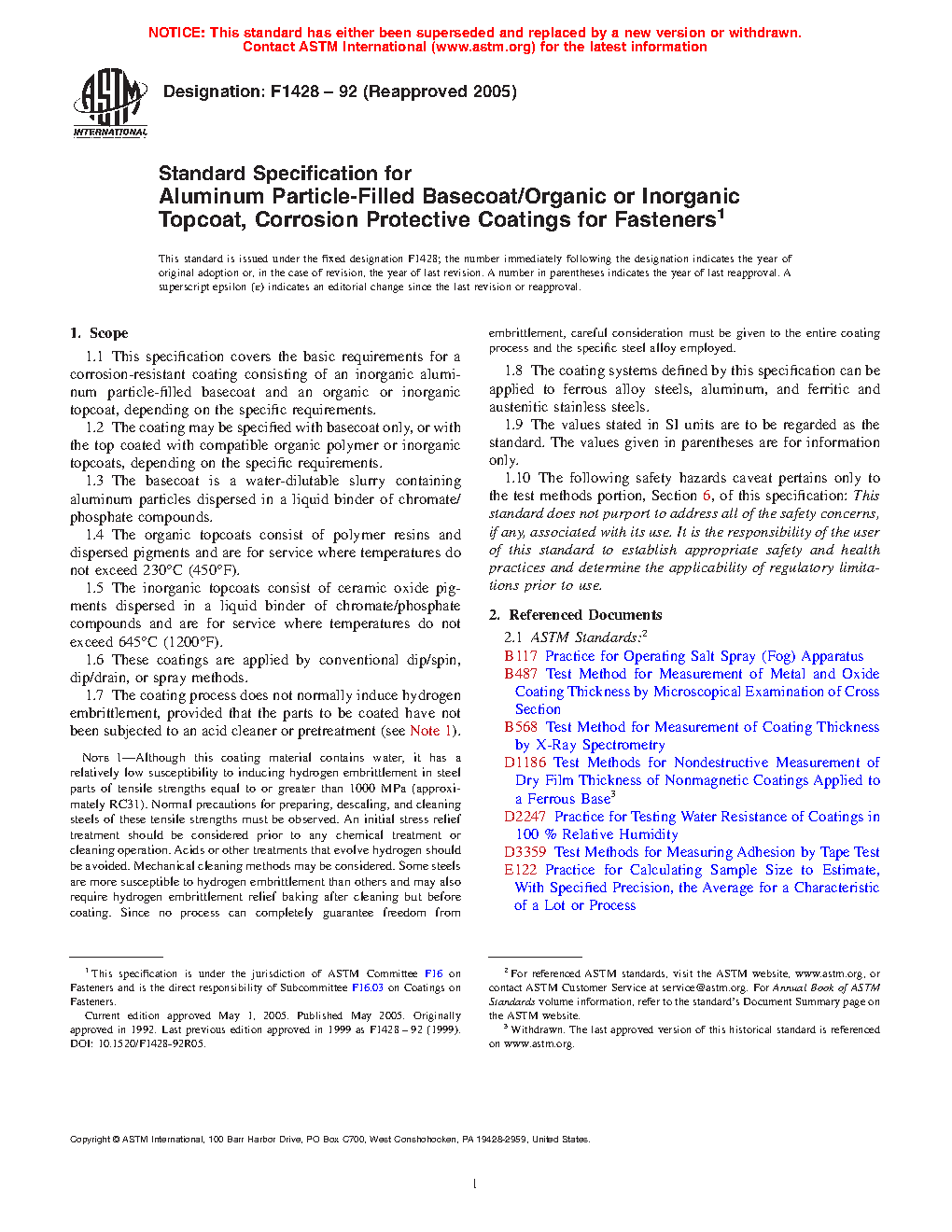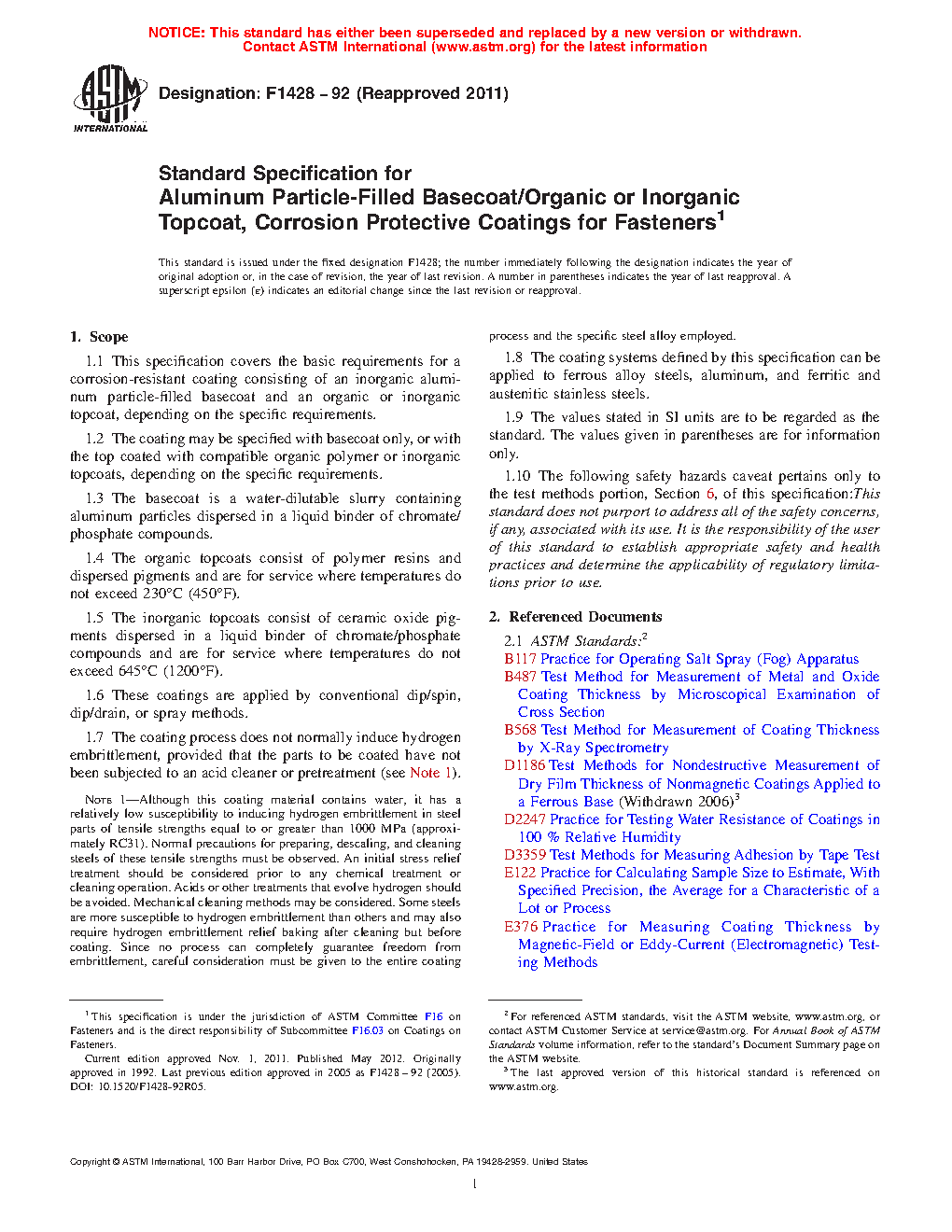 1.1 This specification covers the basic requirements for a corrosion-resistant coating consisting of an inorganic aluminum particle-filled basecoat and an organic or inorganic topcoat, depending on the specific requirements.
