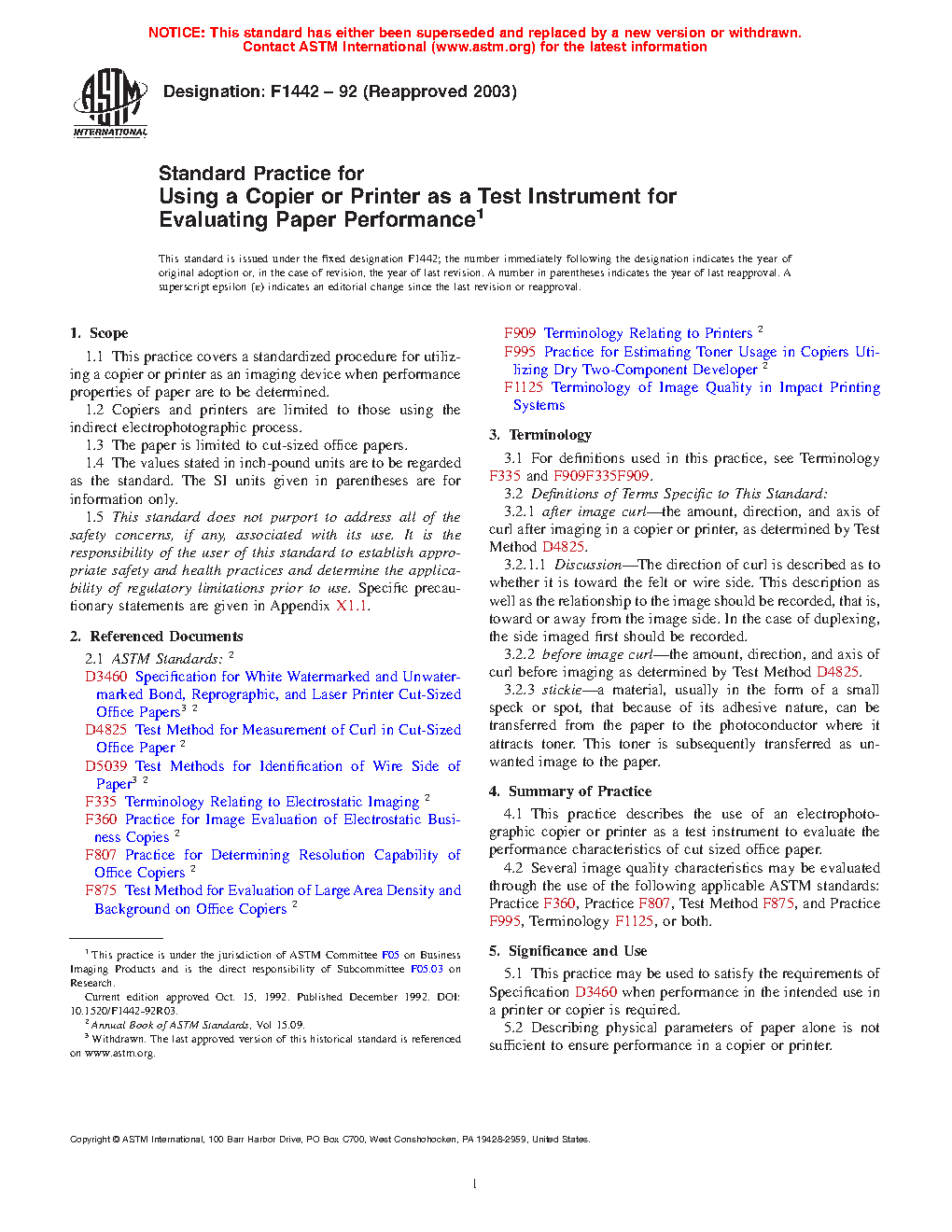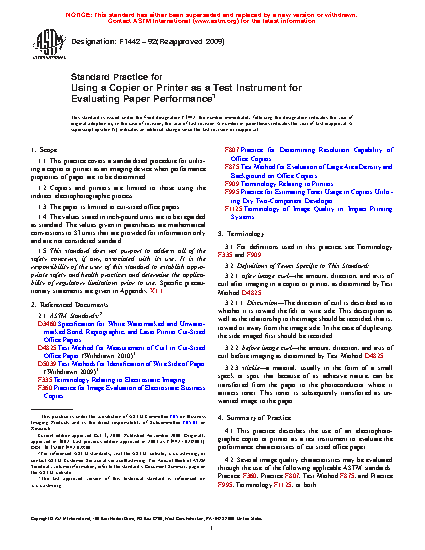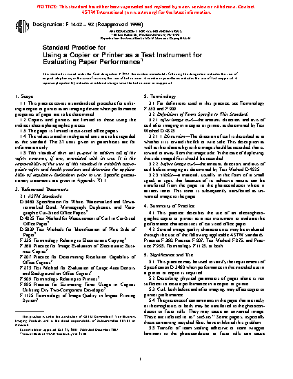 1.1 This practice covers a standardized procedure for utilizing a copier or printer as an imaging device when performance properties of paper are to be determined.