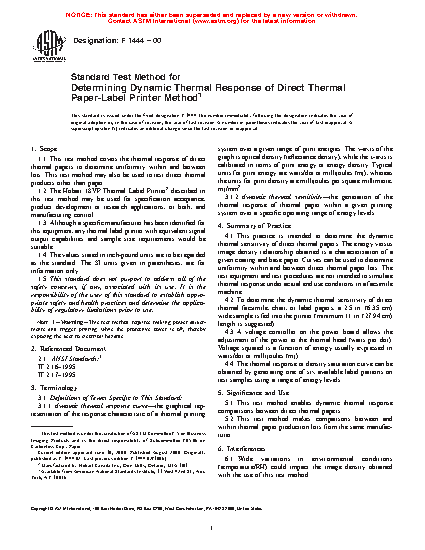 1.3 Although a specific manufacturer has been identified for this equipment, any thermal label printer with equivalent signal output capabilities and sample size requirements would be suitable.