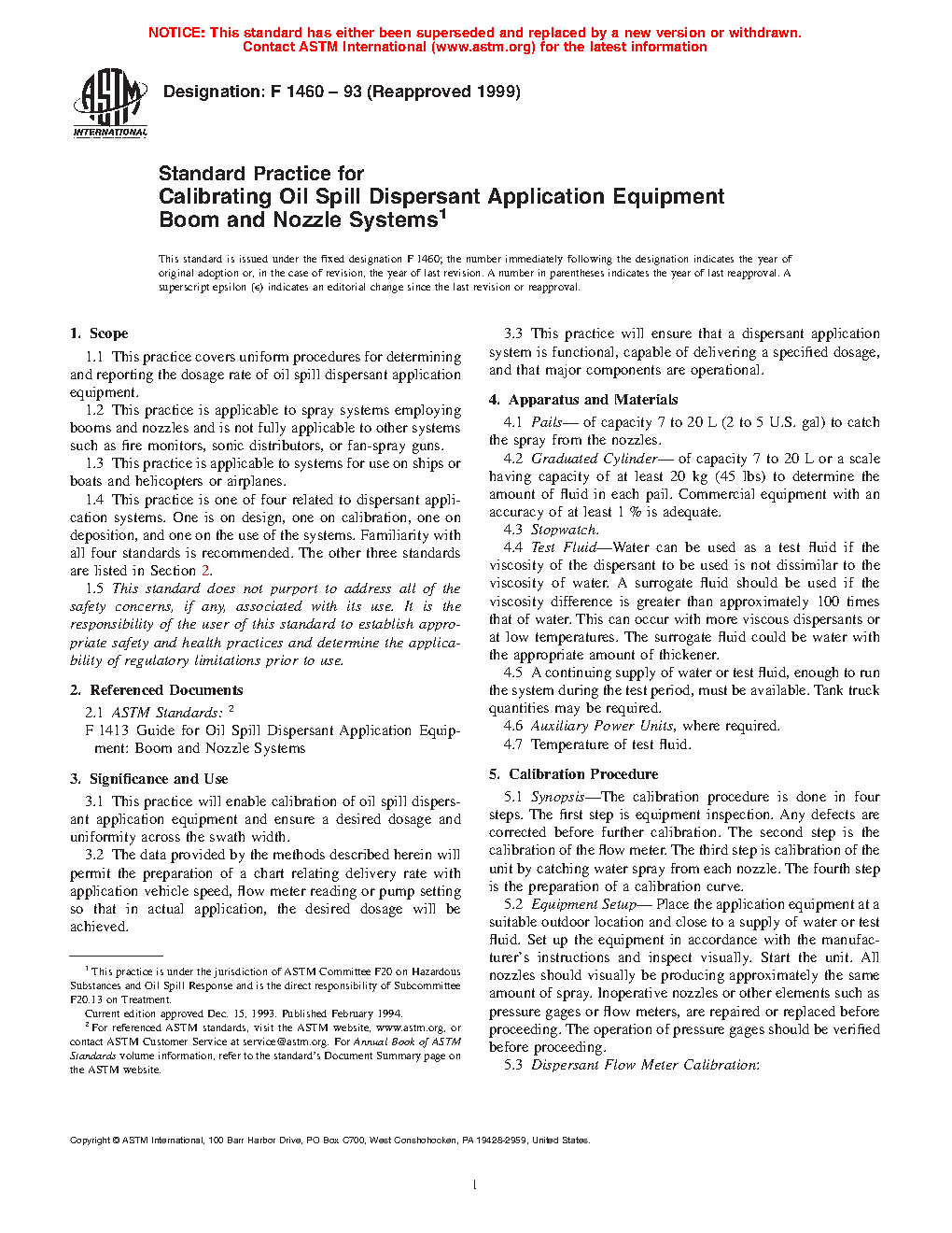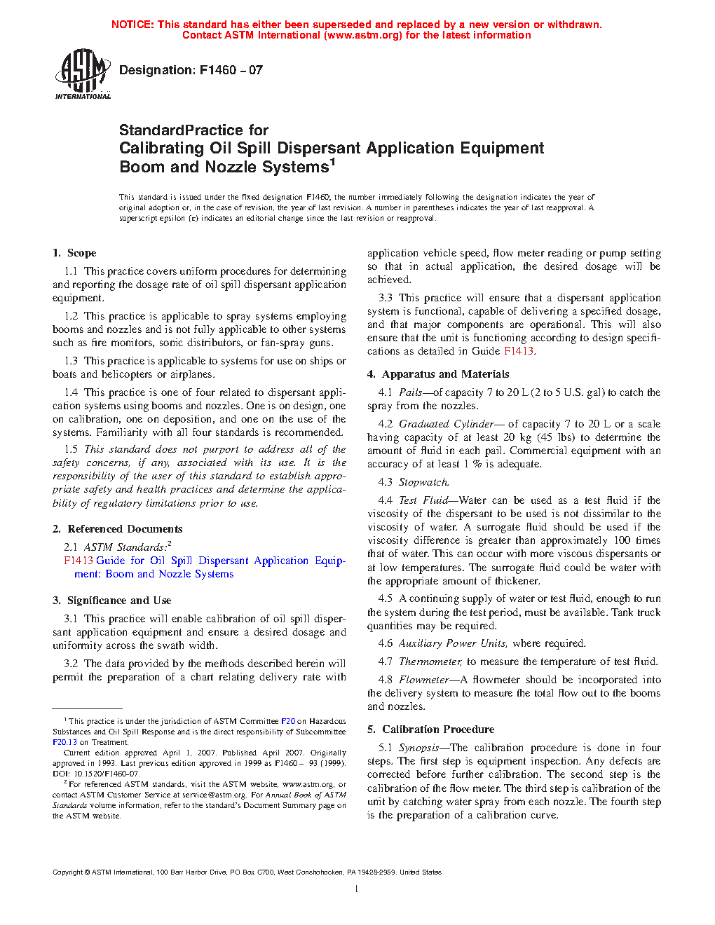 1.4 This practice is one of four related to dispersant application systems using booms and nozzles. One is on design, one on calibration, one on deposition, and one on the use of the systems. Familiarity with all four standards is recommended.