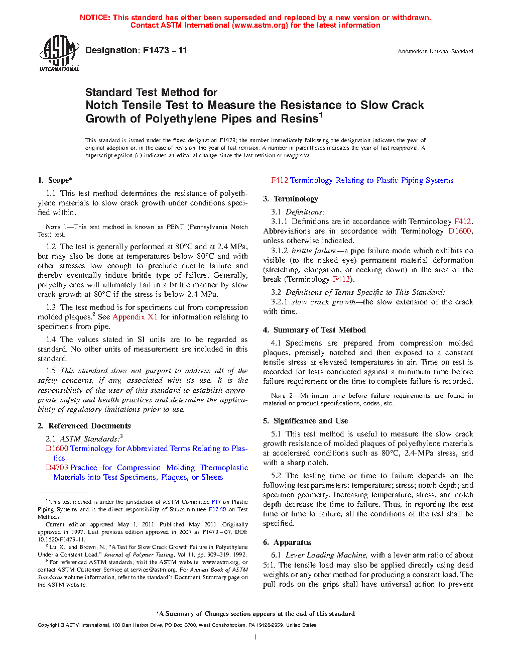 Note 1: This test method is known as PENT (Pennsylvania Notch Test) test.