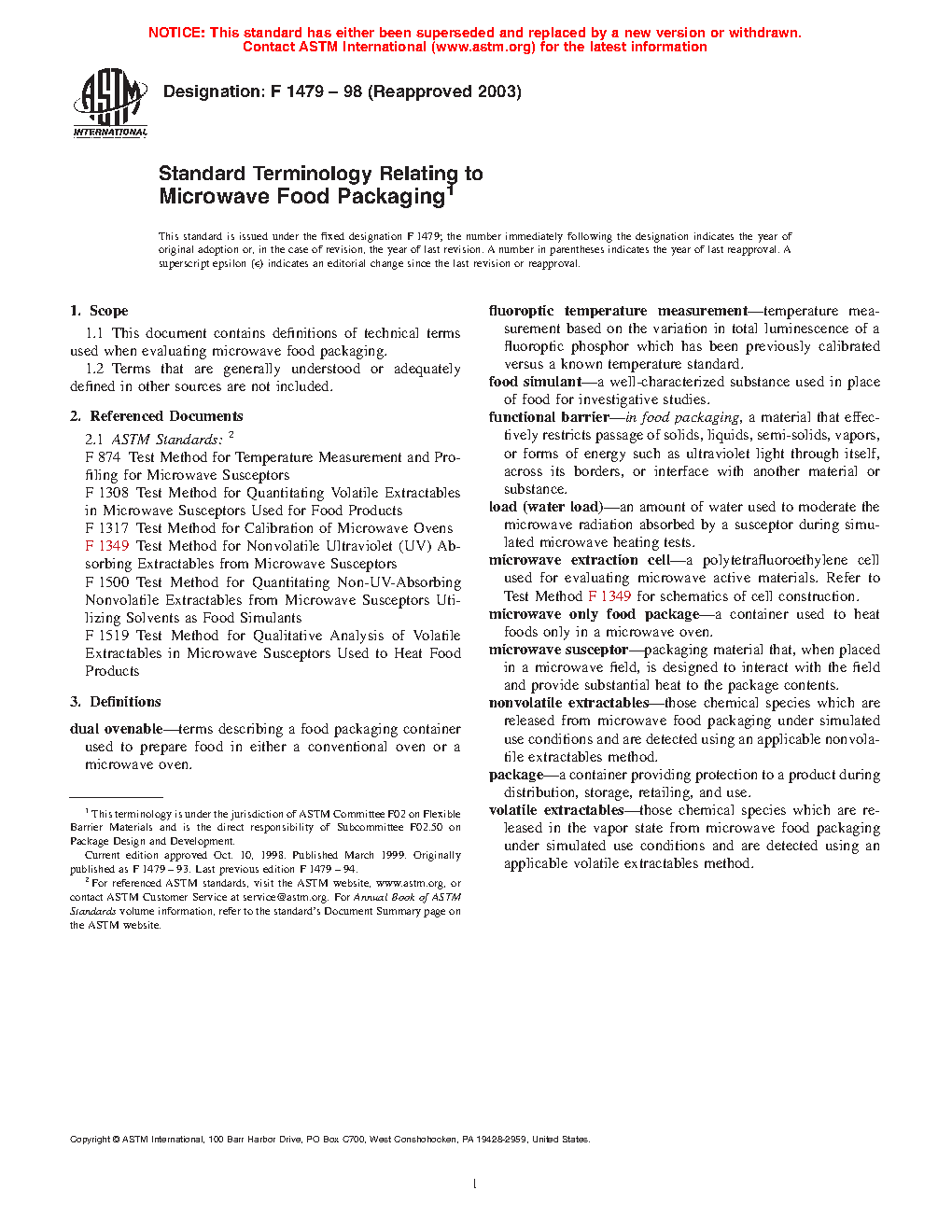 1.1 This document contains definitions of technical terms used when evaluating microwave food packaging.