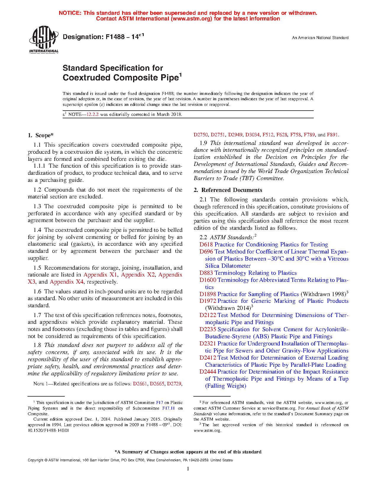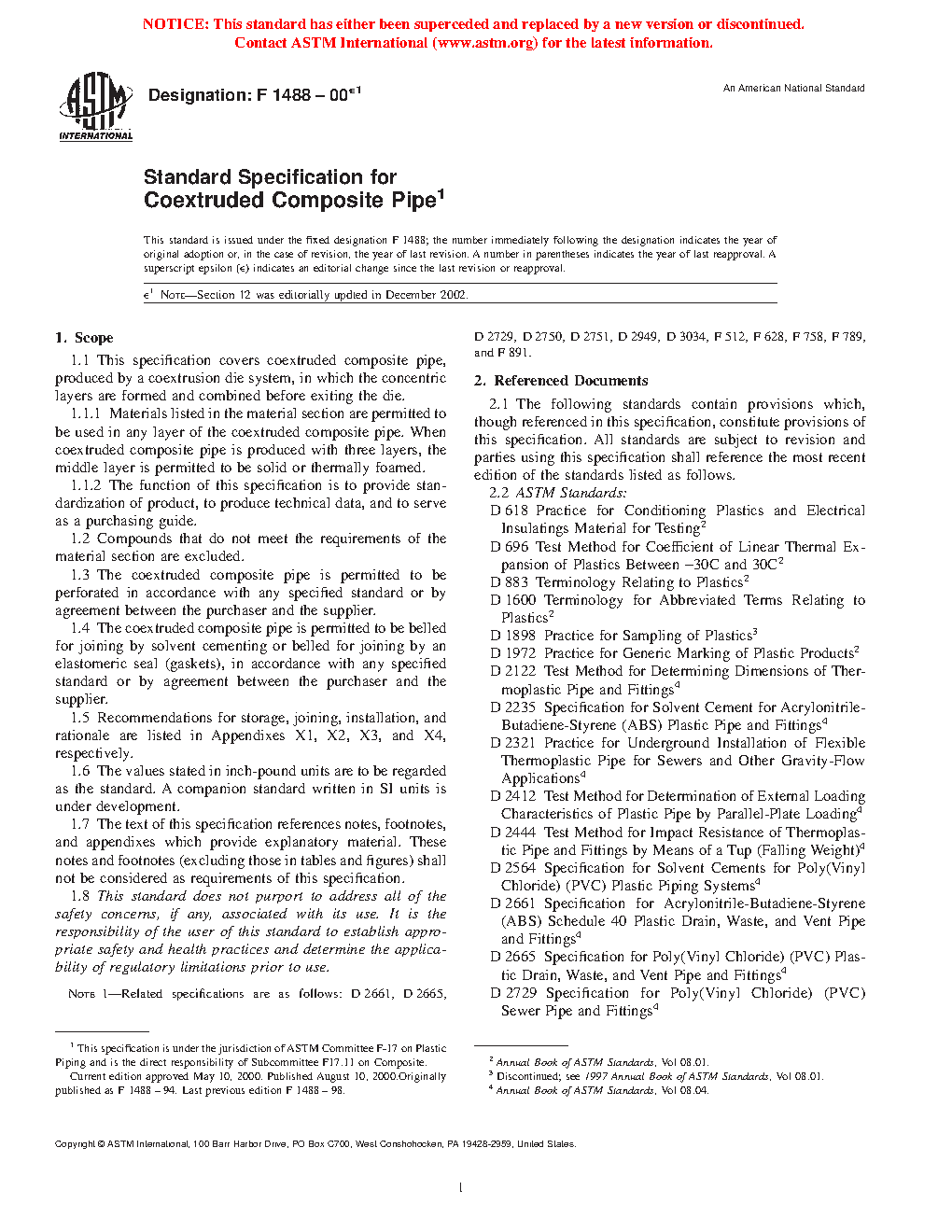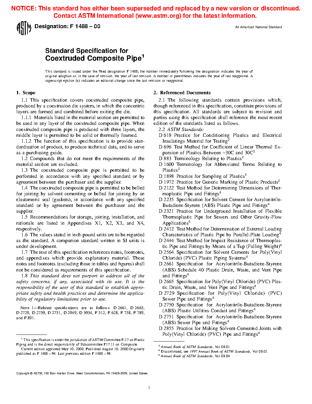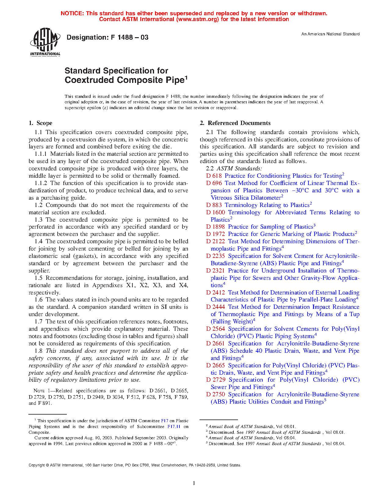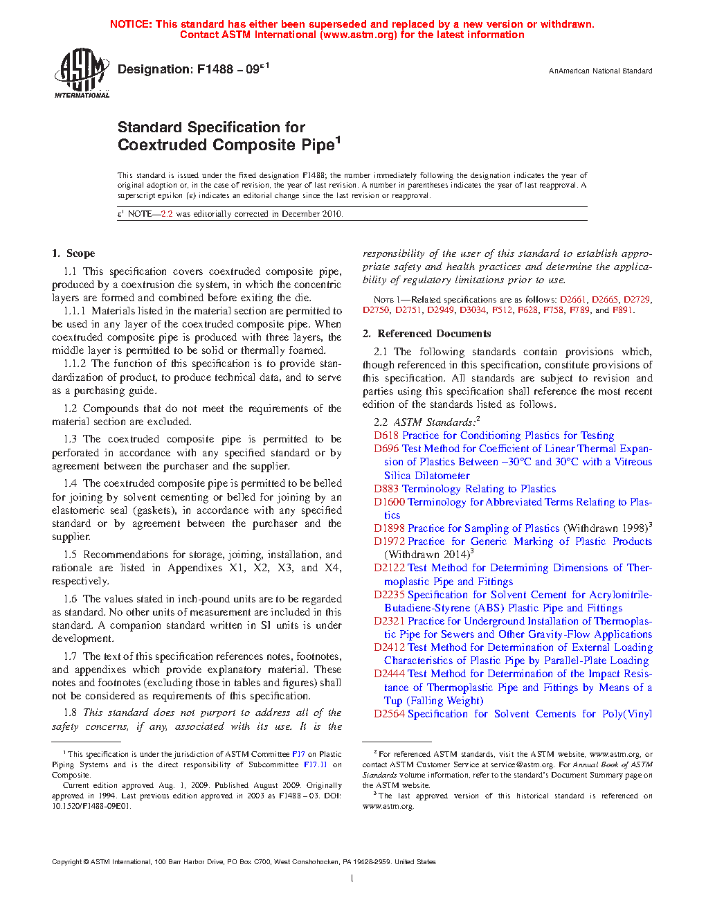 1.1 This specification covers coextruded composite pipe, produced by a coextrusion die system, in which the concentric layers are formed and combined before exiting the die.