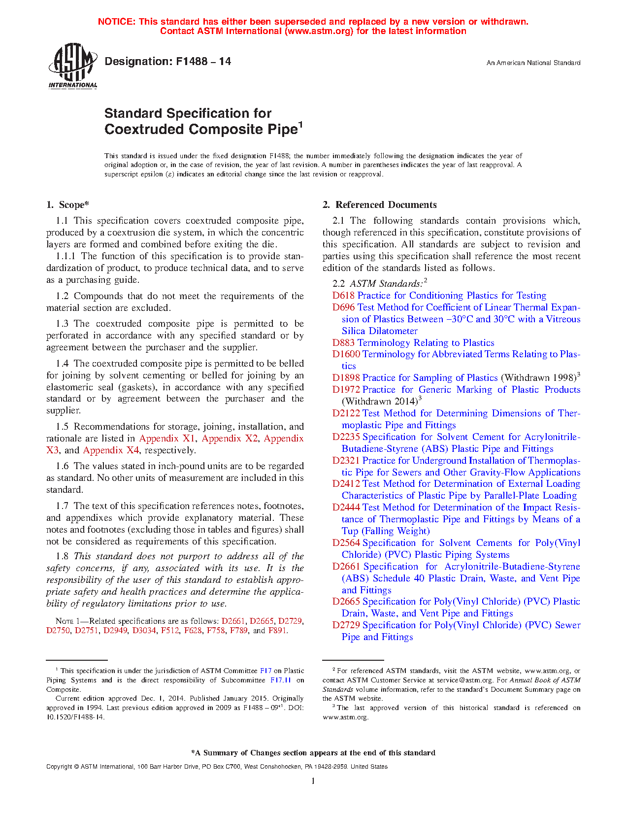 1.5 Recommendations for storage, joining, installation, and rationale are listed in Appendix X1, Appendix X2, Appendix X3, and Appendix X4, respectively.
