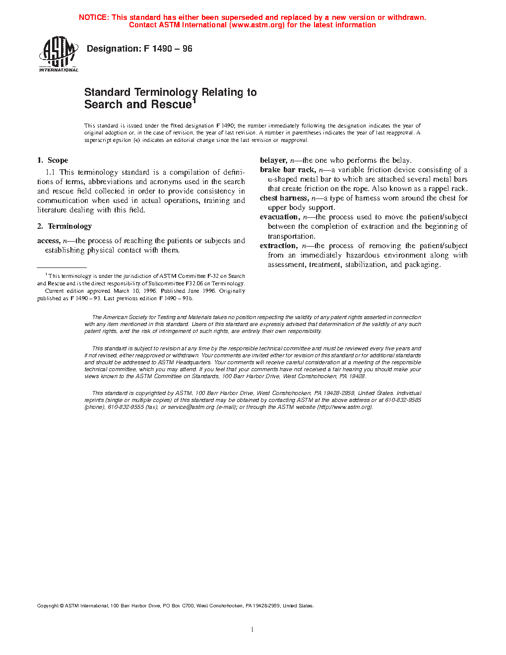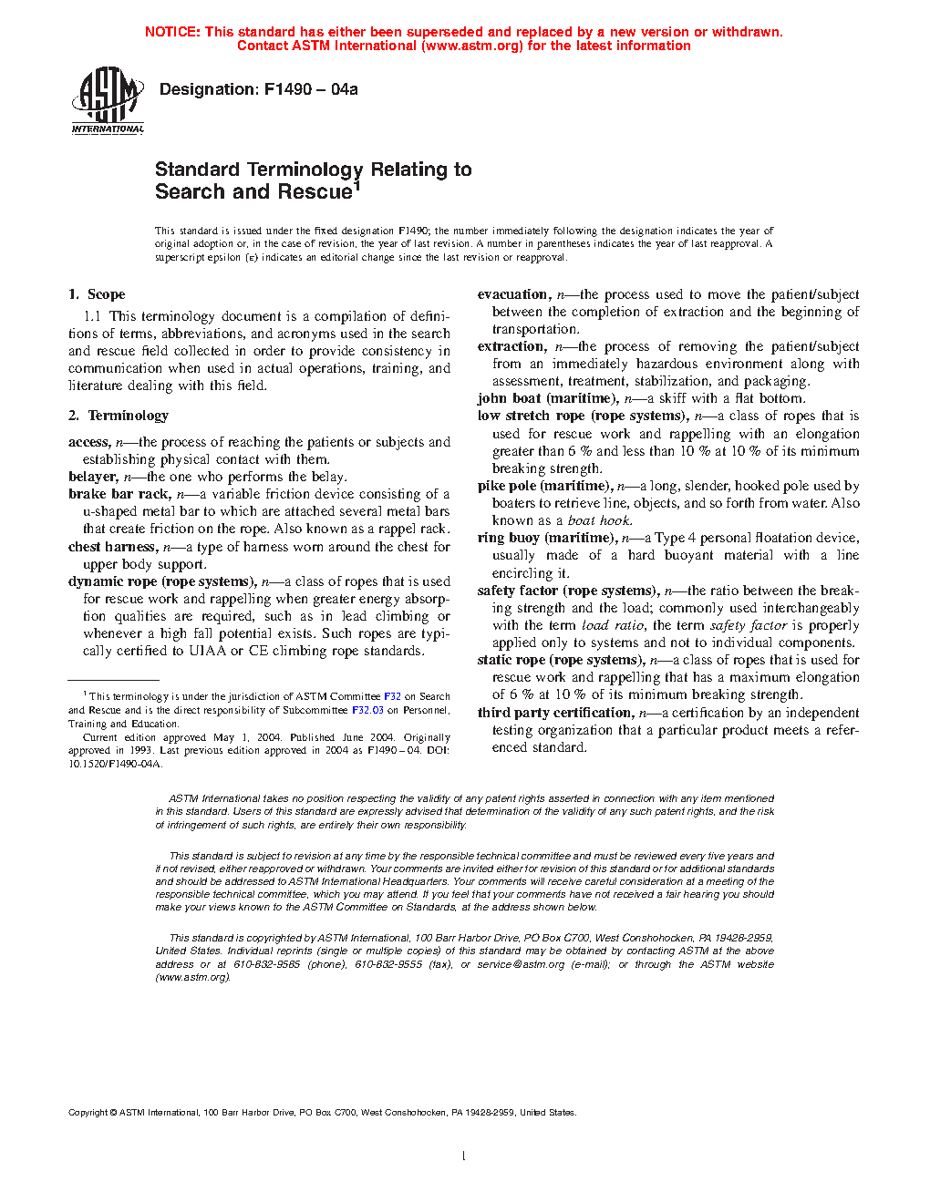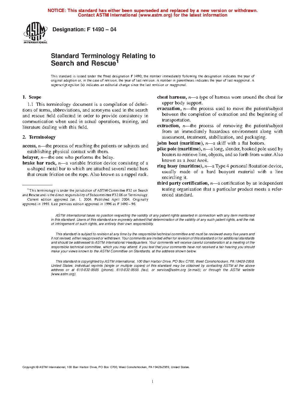 1.1 This terminology standard is a compilation of definitions of terms, abbreviations and acronyms used in the search and rescue field collected in order to provide consistency in communication when used in actual operations, training and literature dealing with this field.