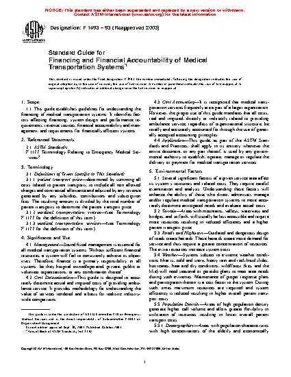 1.1 This guide establishes guidelines for understanding the financing of medical transportation systems. It identifies factors affecting financing, system design and performance requirements, revenue sources, financial accountability and management, and requirements for financially efficient systems.