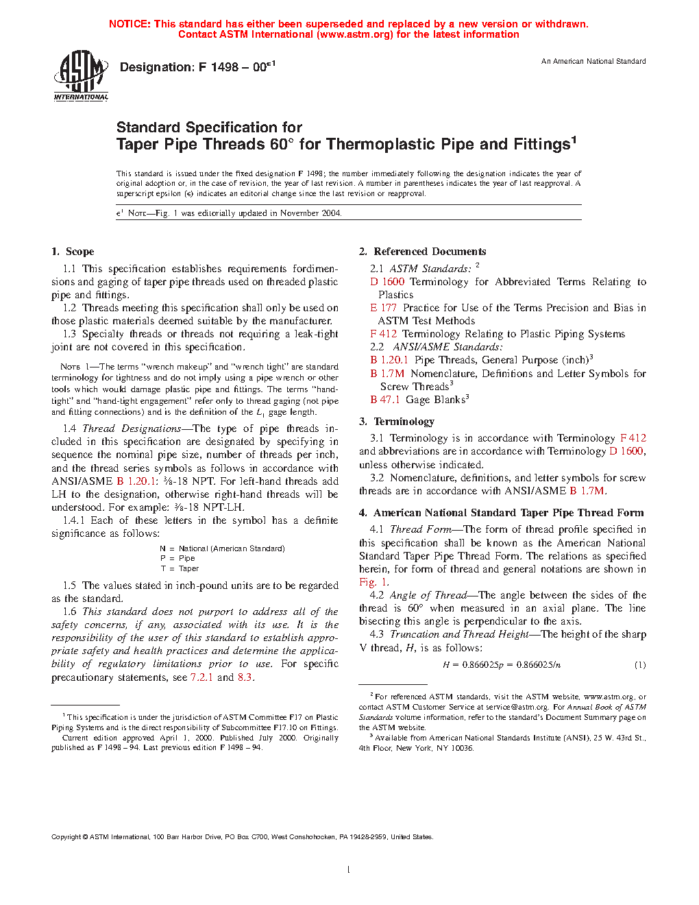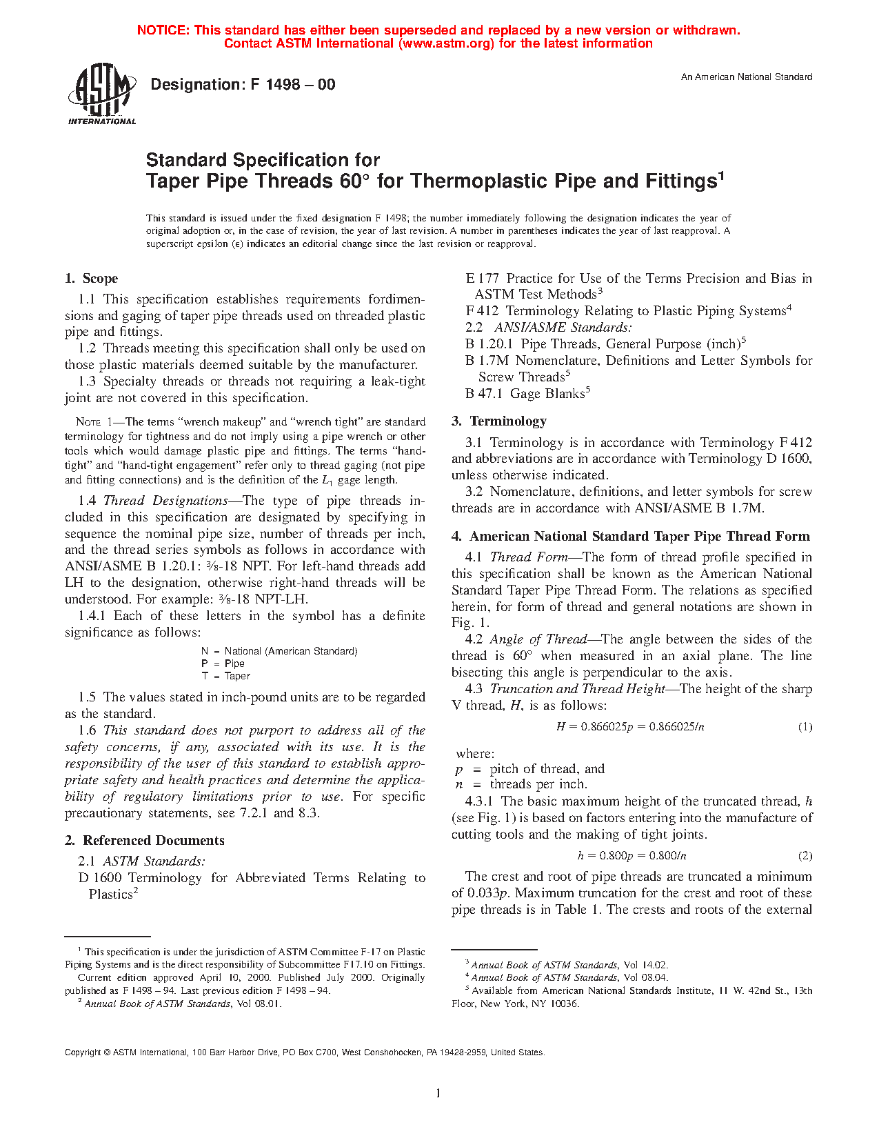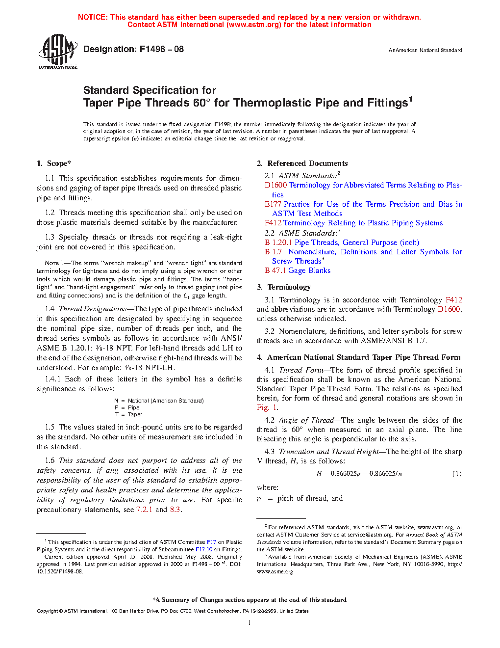 1.3 Specialty threads or threads not requiring a leak-tight joint are not covered in this specification.