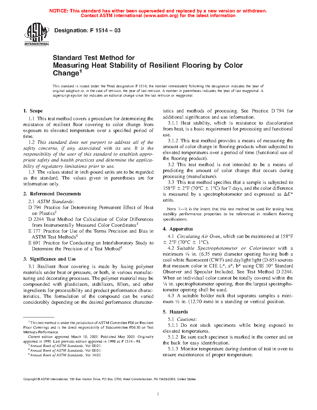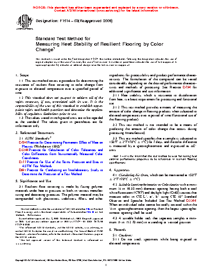 Note 1: It is the intent that this test method be used for testing heat stability performance properties to be referenced in resilient flooring specifications.