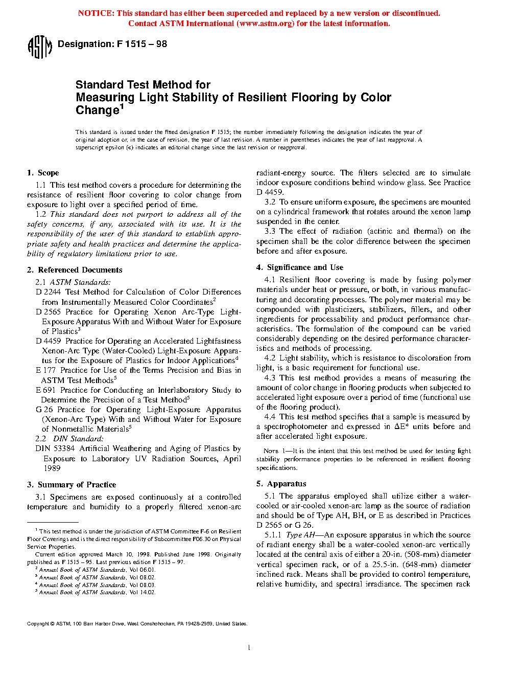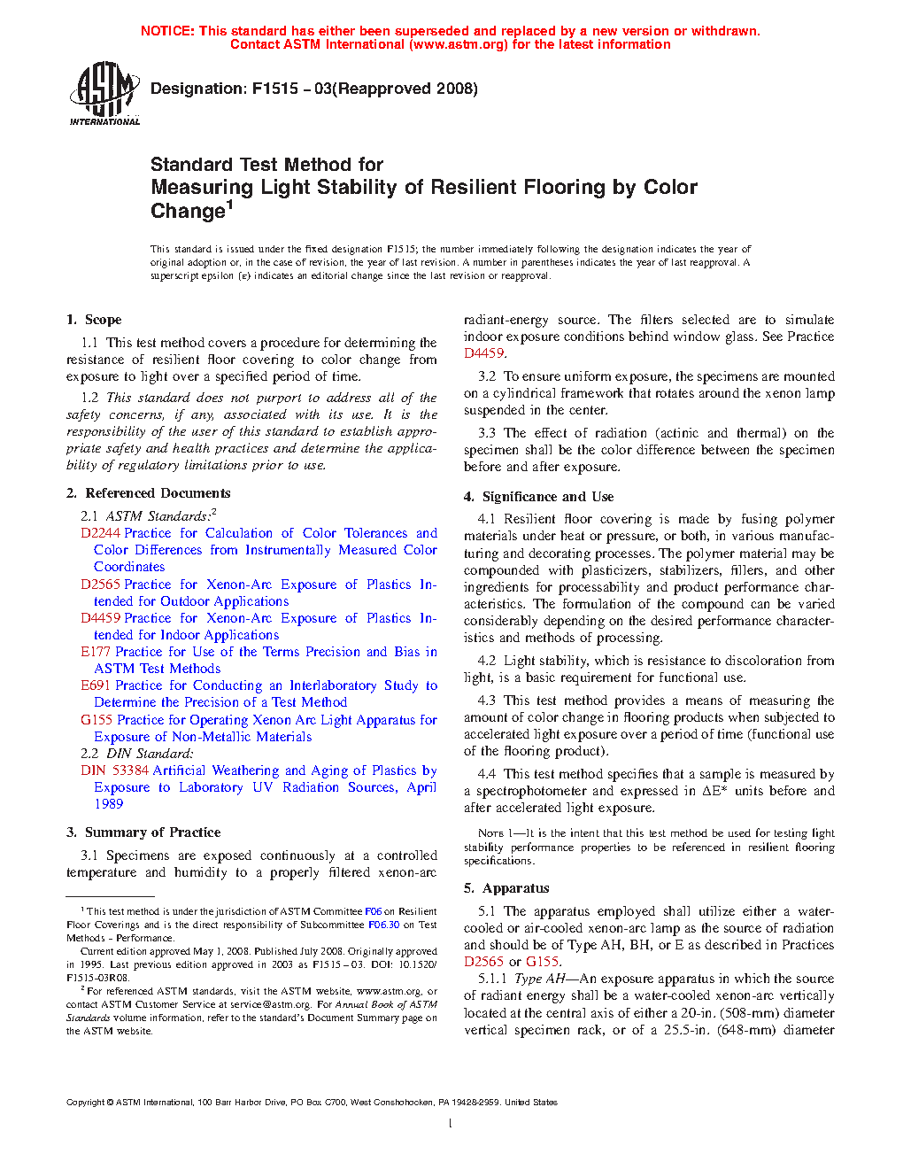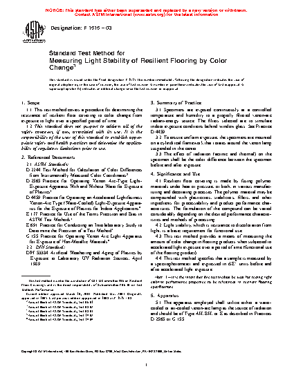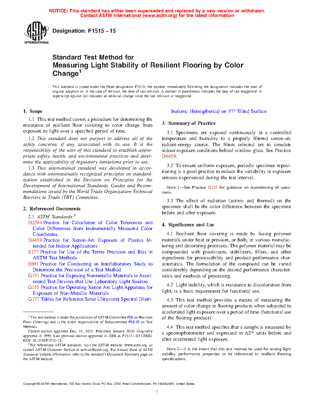 Note 2: It is the intent that this test method be used for testing light stability performance properties to be referenced in resilient flooring specifications.