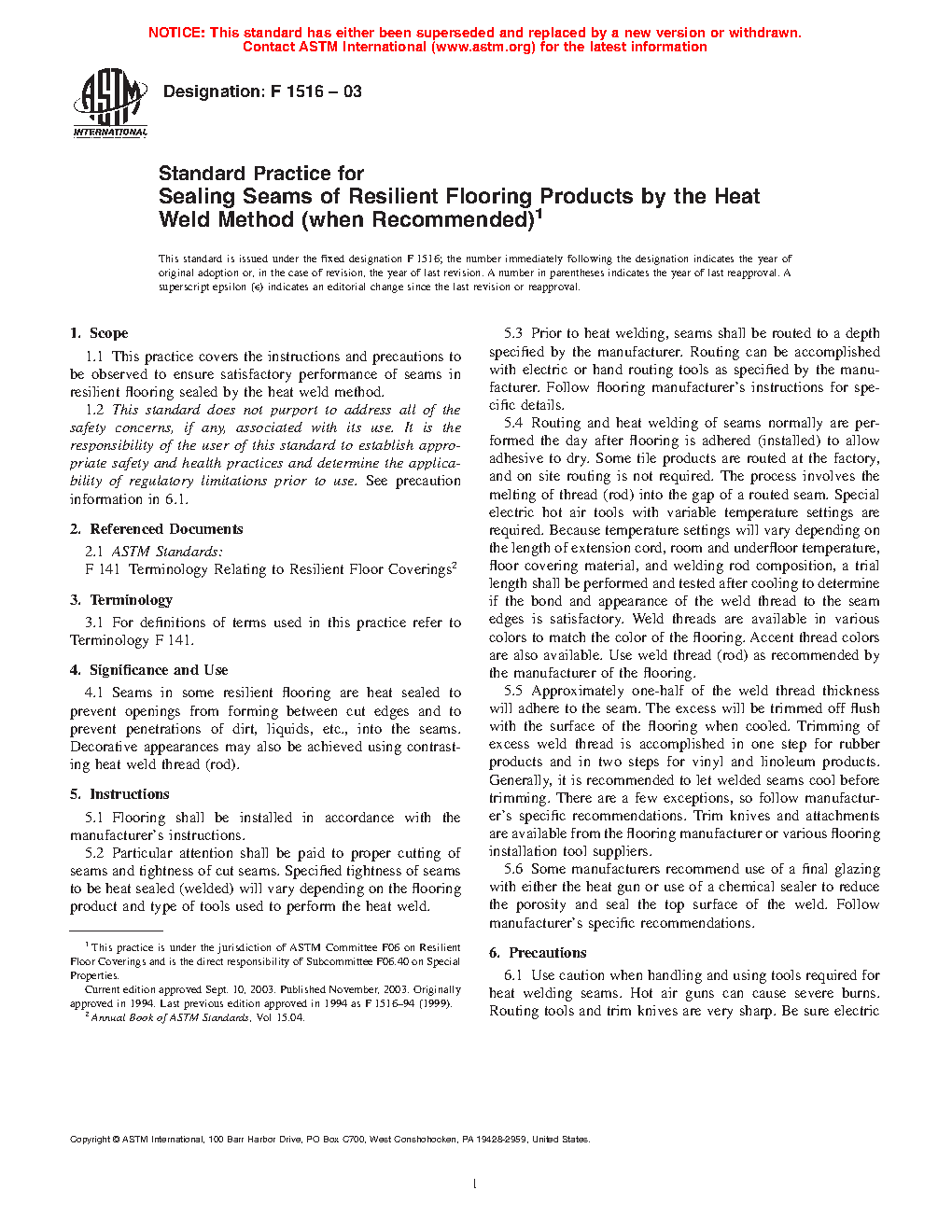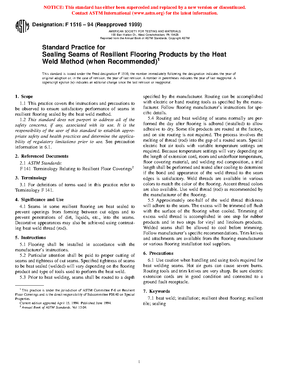 Standard Practice for Sealing Seams of Resilient Flooring Products by the Heat Weld Method (when Recommended)