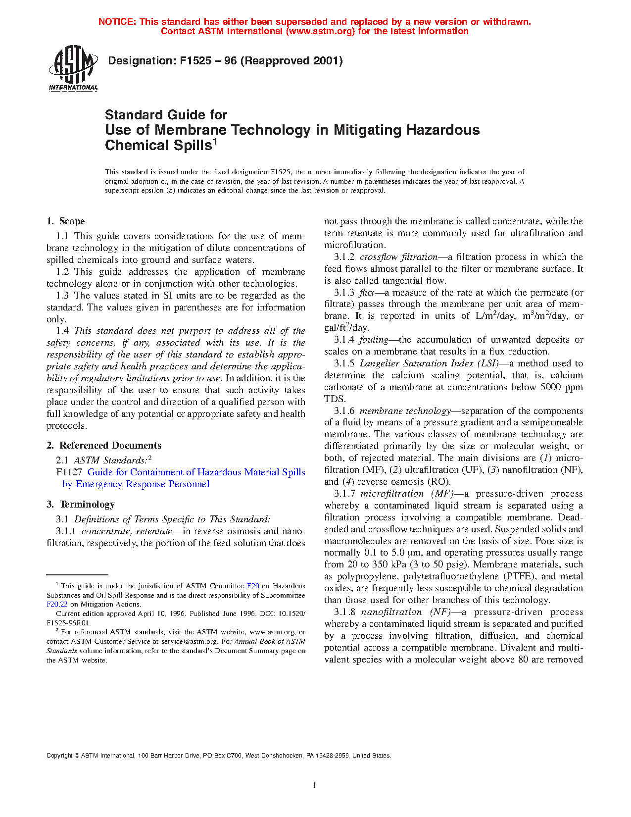 1.1 This guide covers considerations for the use of membrane technology in the mitigation of dilute concentrations of spilled chemicals into ground and surface waters.