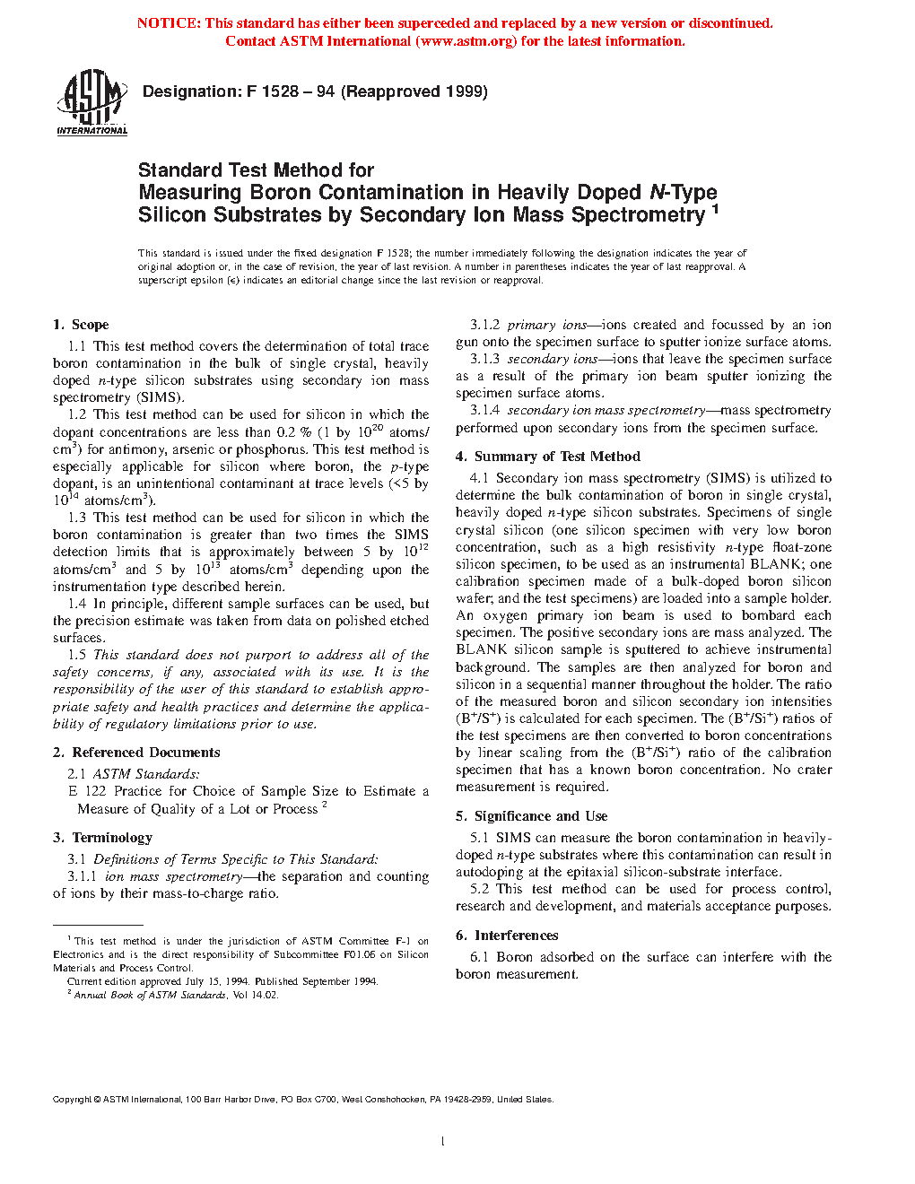 1.3 This test method can be used for silicon in which the boron contamination is greater than two times the SIMS detection limits that is approximately between 5 by 10 12 atoms/cm3 and 5 by 10 13 atoms/cm3 depending upon the instrumentation type described herein.