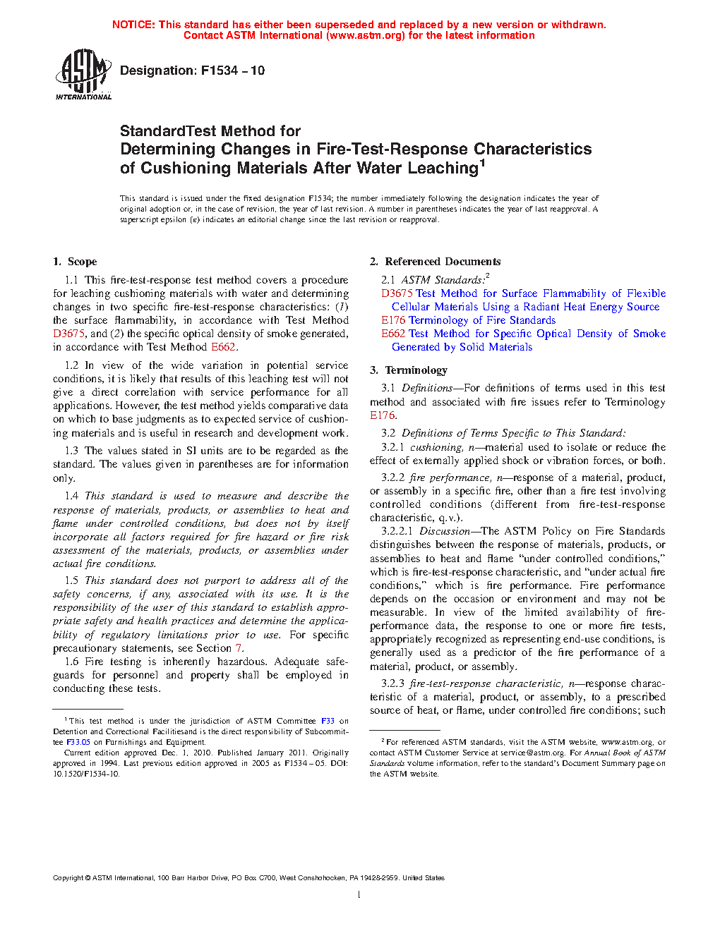 5.3 In view of the importance that the fire performance of the cushioning materials used in upholstery applications remain constant throughout their intended service life, this test method provides a means to test for the potential change in two fire-test-response characteristics due to leaching.