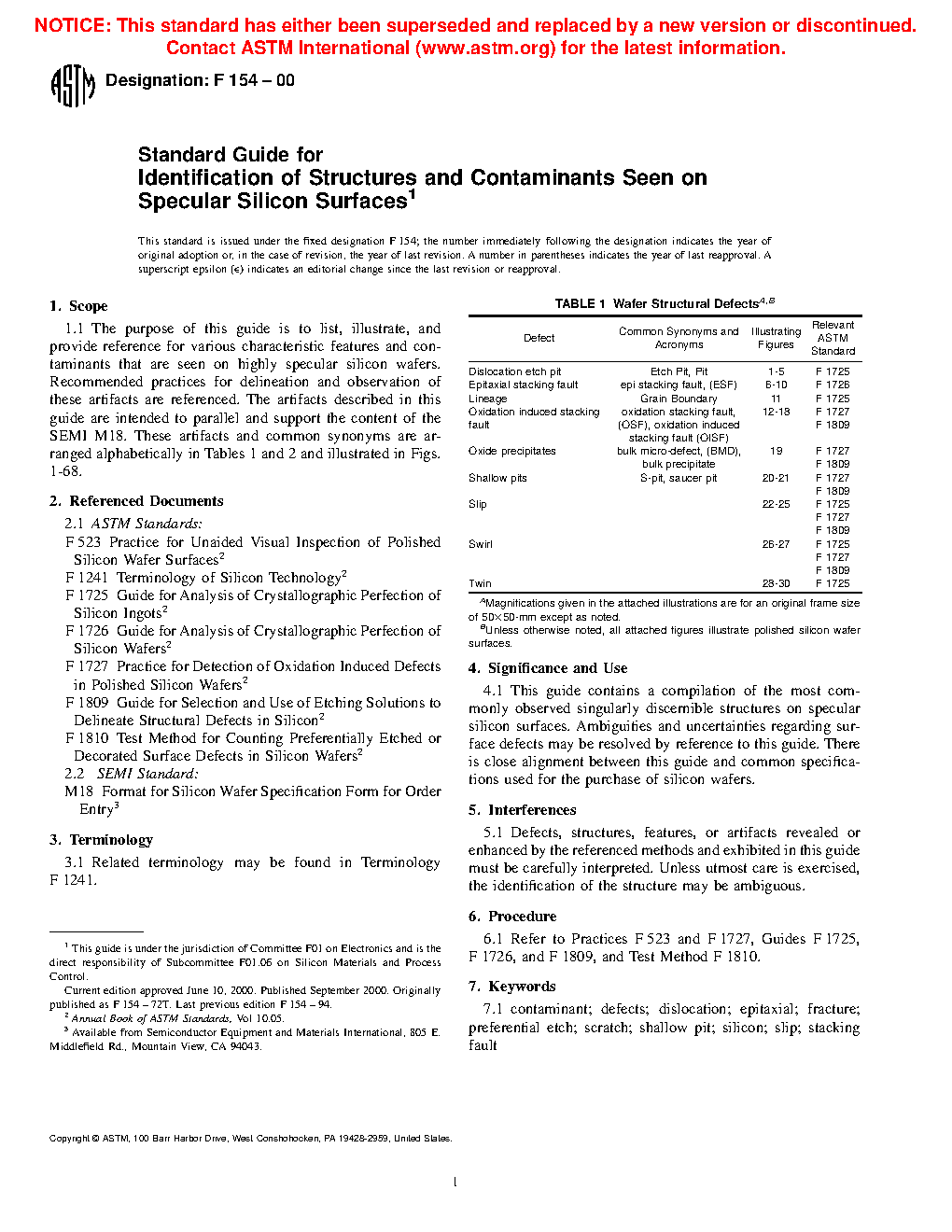 Standard Guide for Identification of Structures and Contaminants Seen on Specular Silicon Surfaces