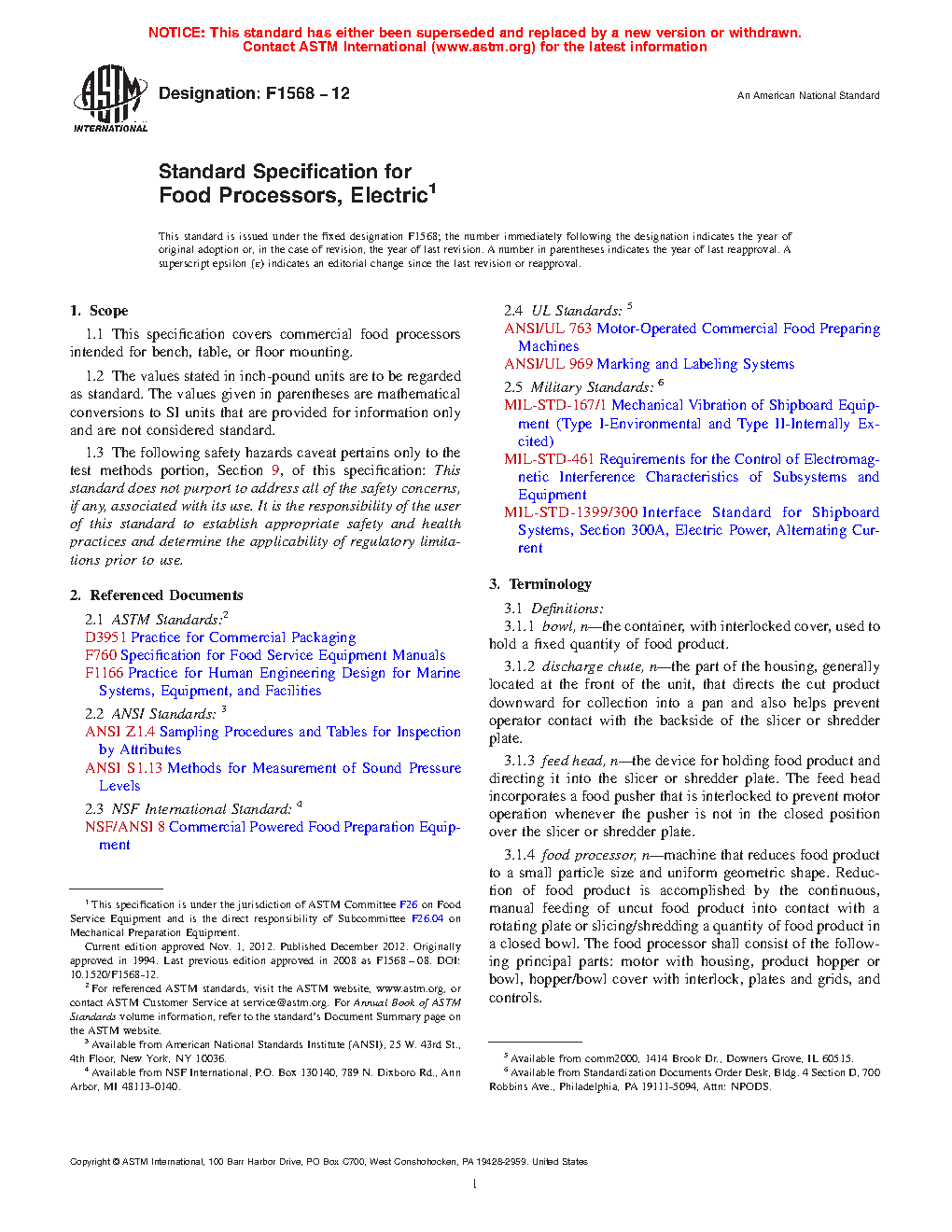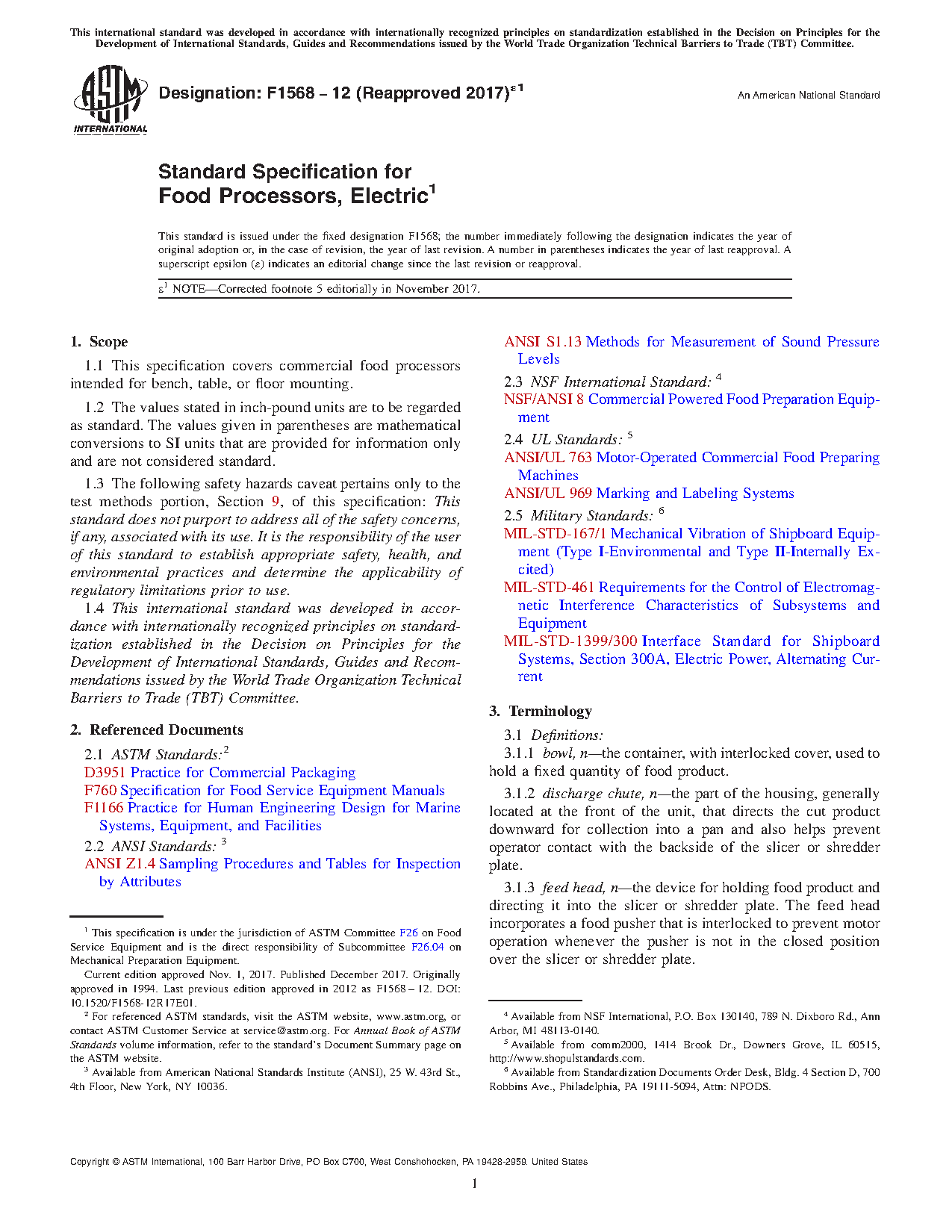 1.1 This specification covers commercial food processors intended for bench or table mounting.