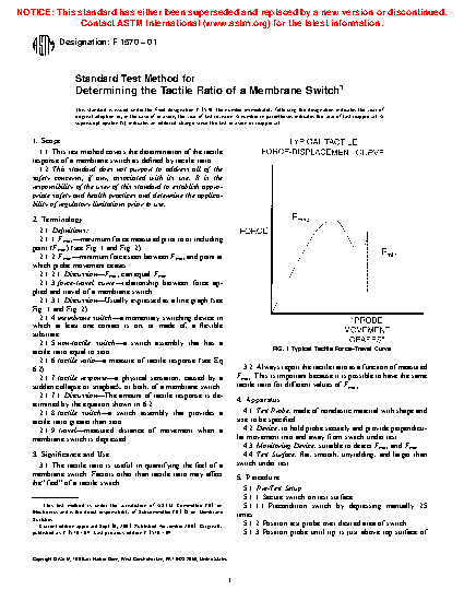 Standard Test Method for Determining the Tactile Ratio of a Membrane Switch (Withdrawn 2007)