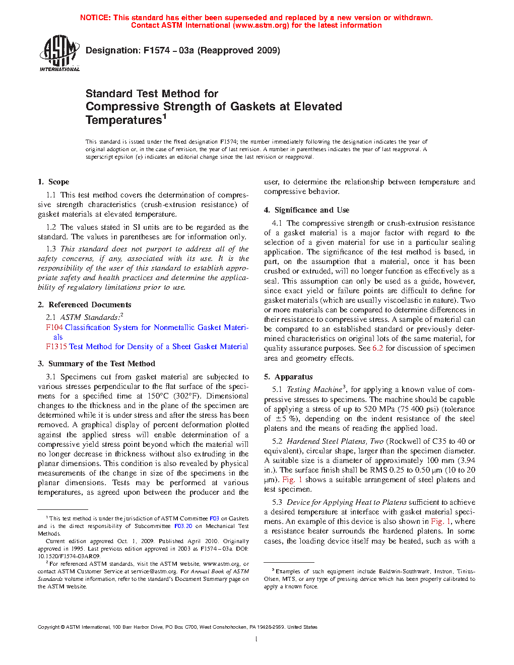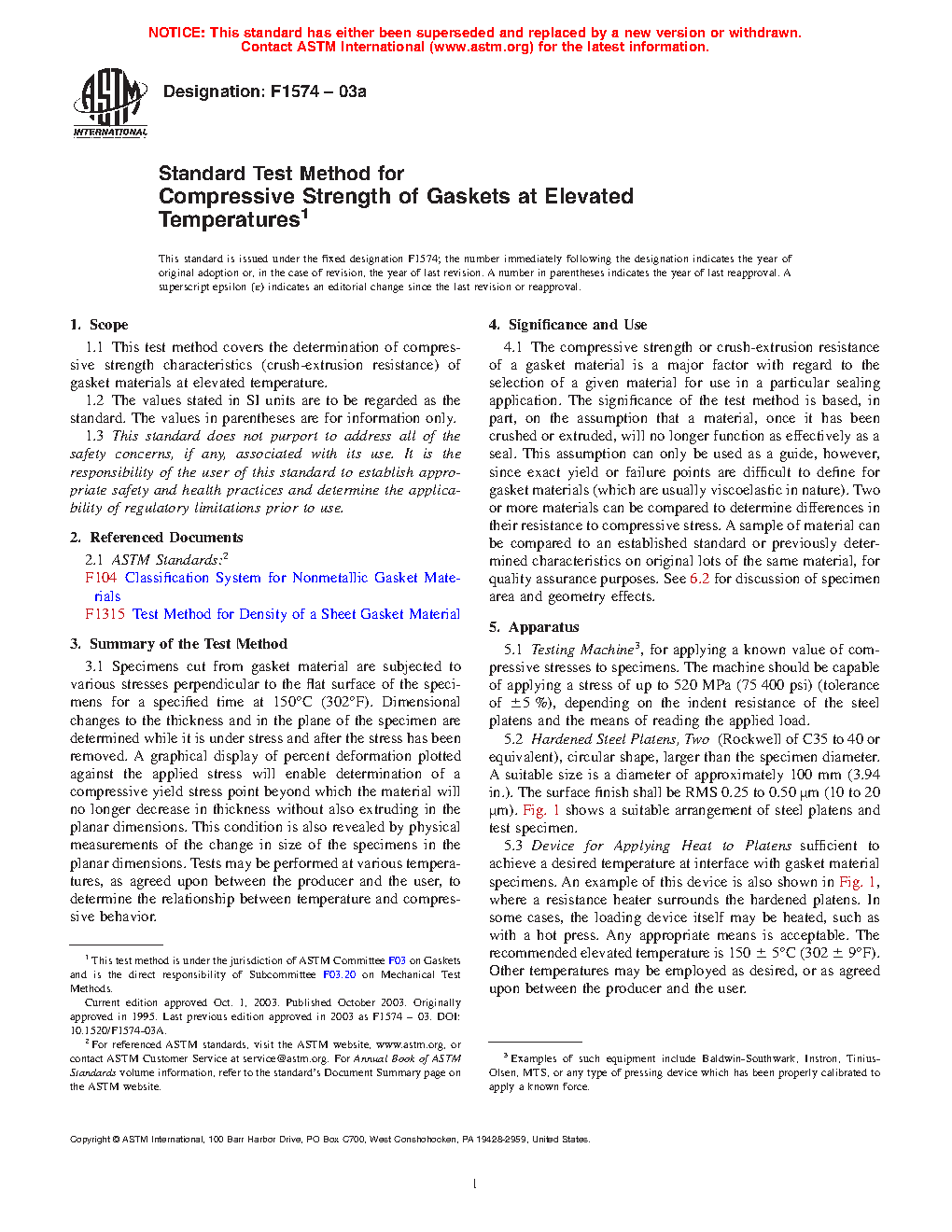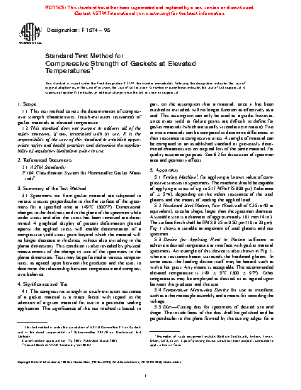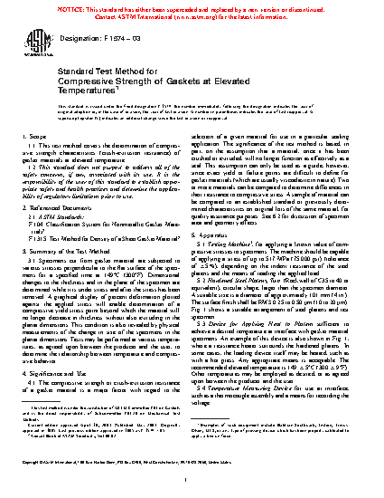 1.1 This test method covers the determination of compressive strength characteristics (crush-extrusion resistance) of gasket materials at elevated temperature.