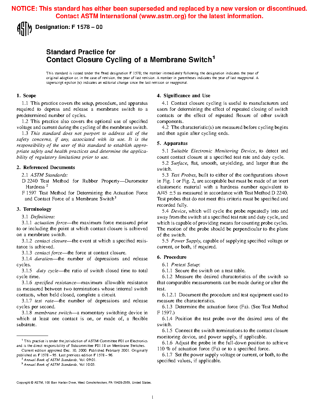 1.2 This practice also covers the optional use of specified voltage and current during the cycling of the membrane switch.