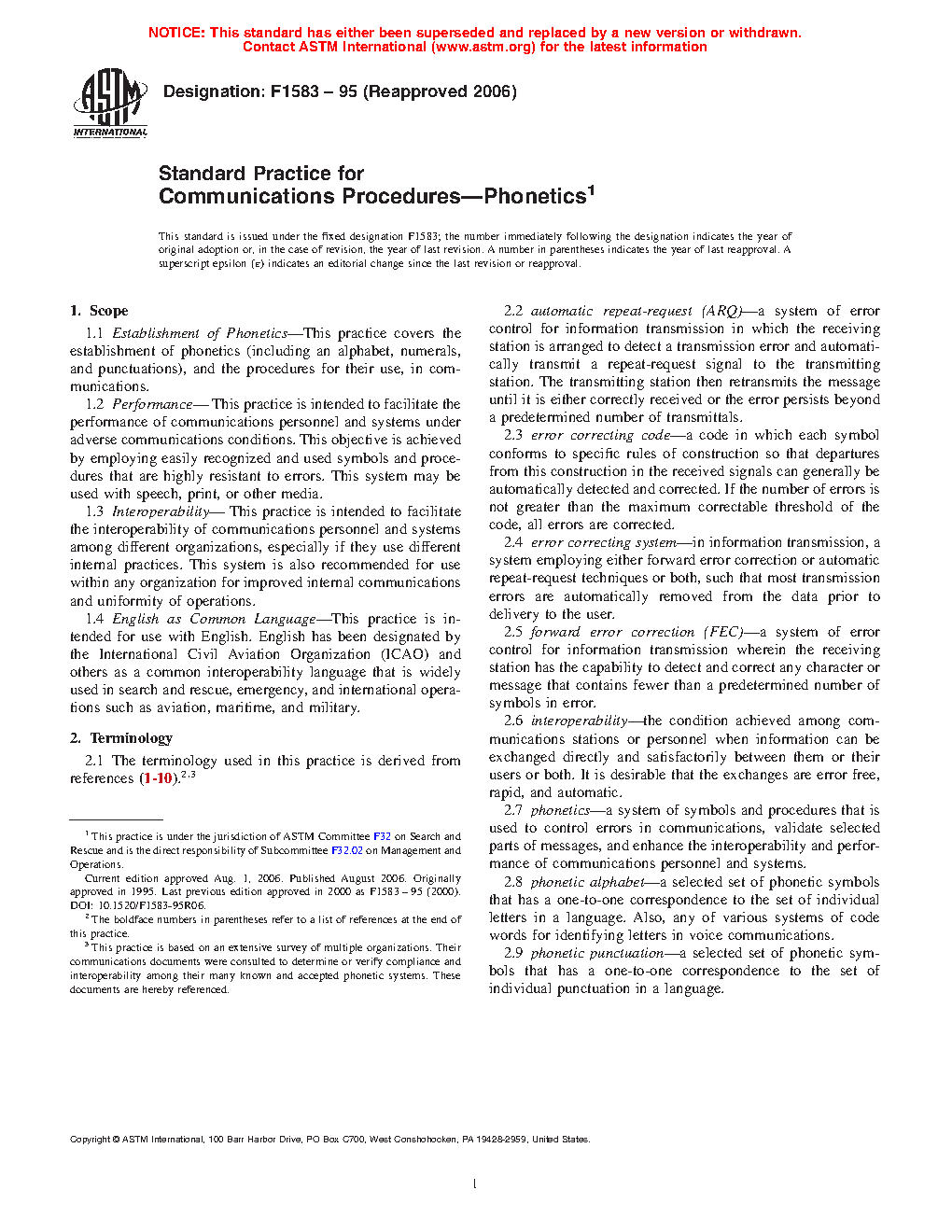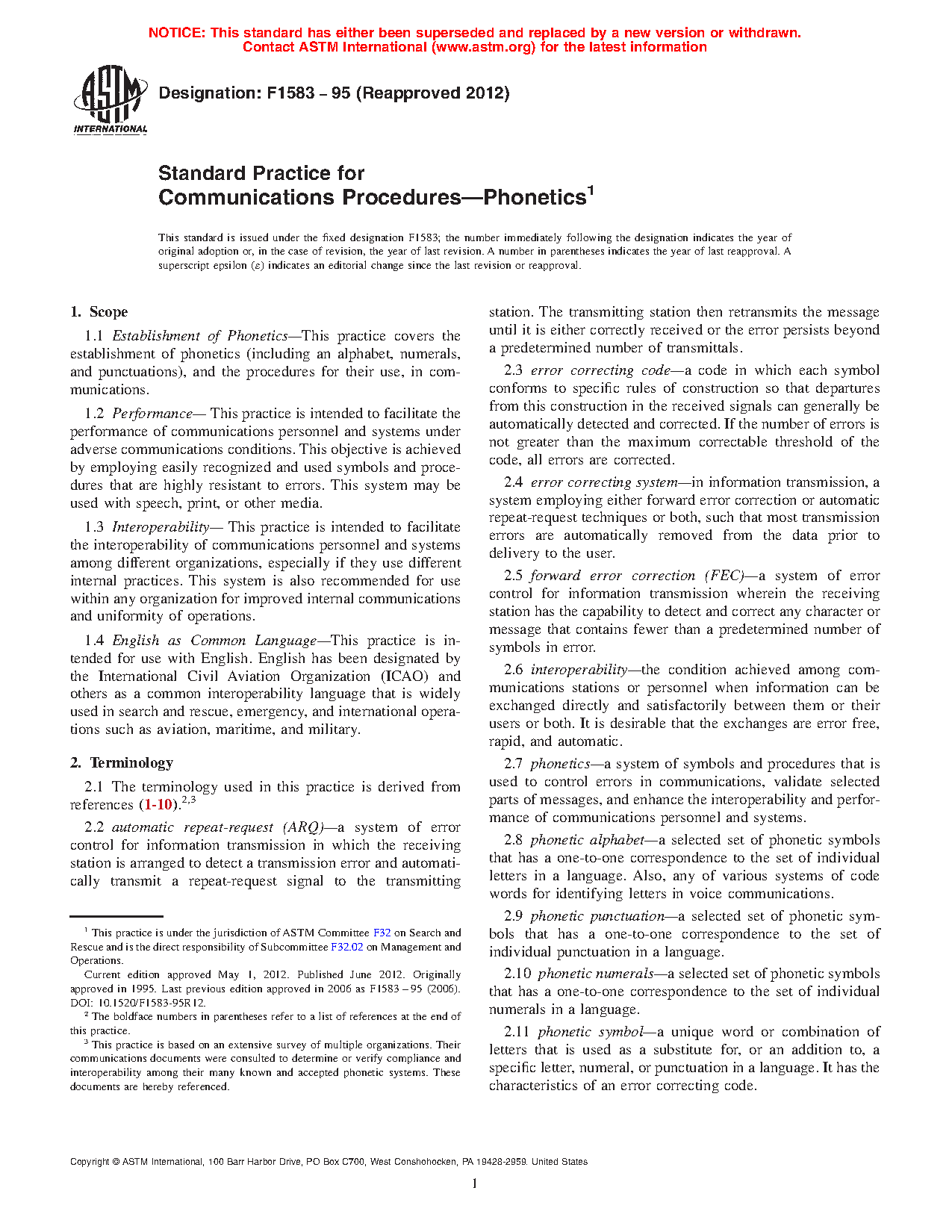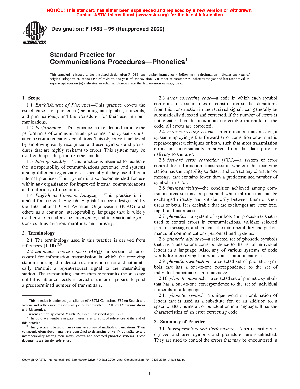 1.2 Performance— This practice is intended to facilitate the performance of communications personnel and systems under adverse communications conditions. This objective is achieved by employing easily recognized and used symbols and procedures that are highly resistant to errors. This system may be used with speech, print, or other media.