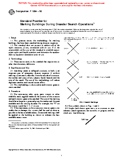 1.1 This practice covers the methodology for marking buildings that have been searched during disaster responses.