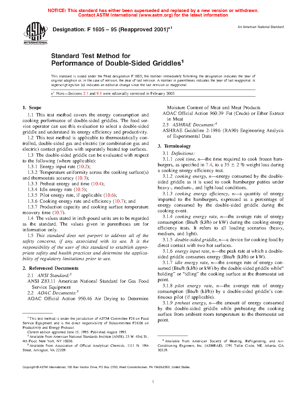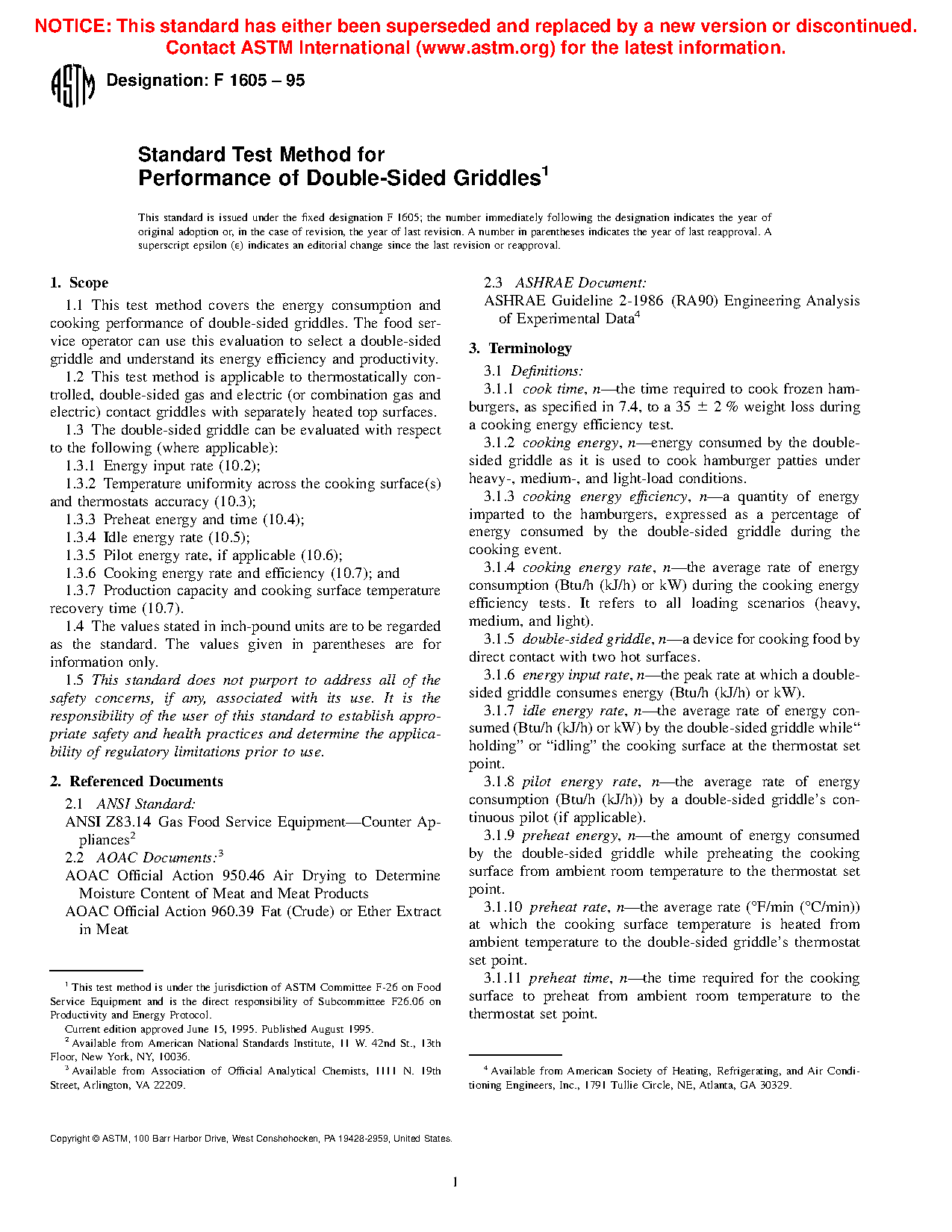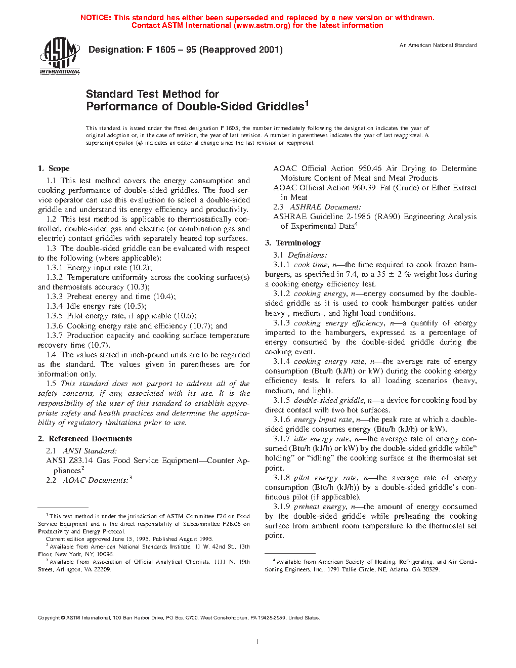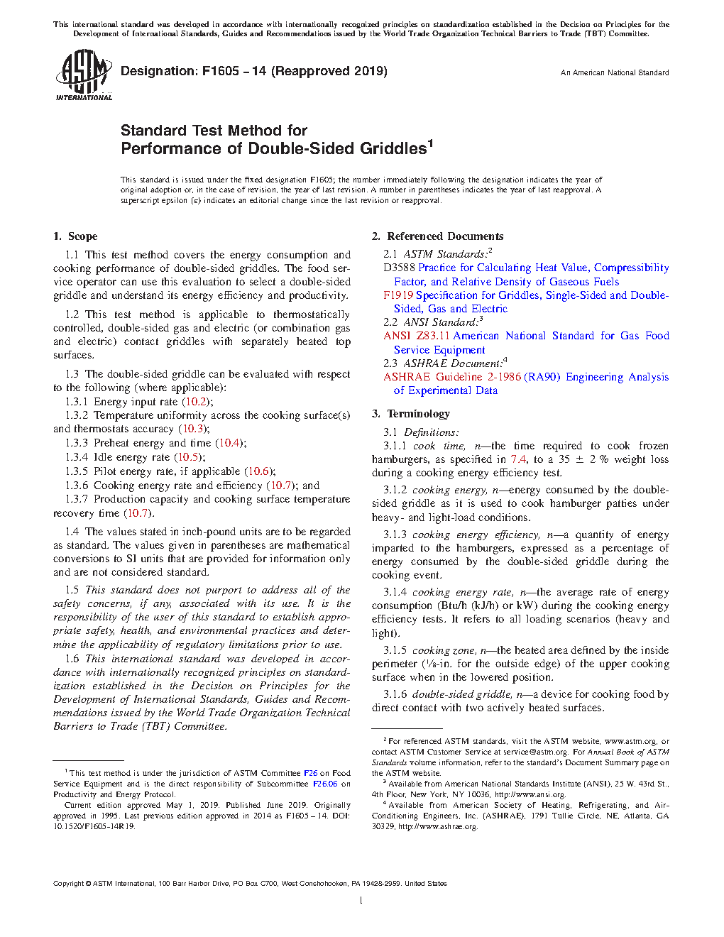 1.2 This test method is applicable to thermostatically controlled, double-sided gas and electric (or combination gas and electric) contact griddles with separately heated top surfaces.