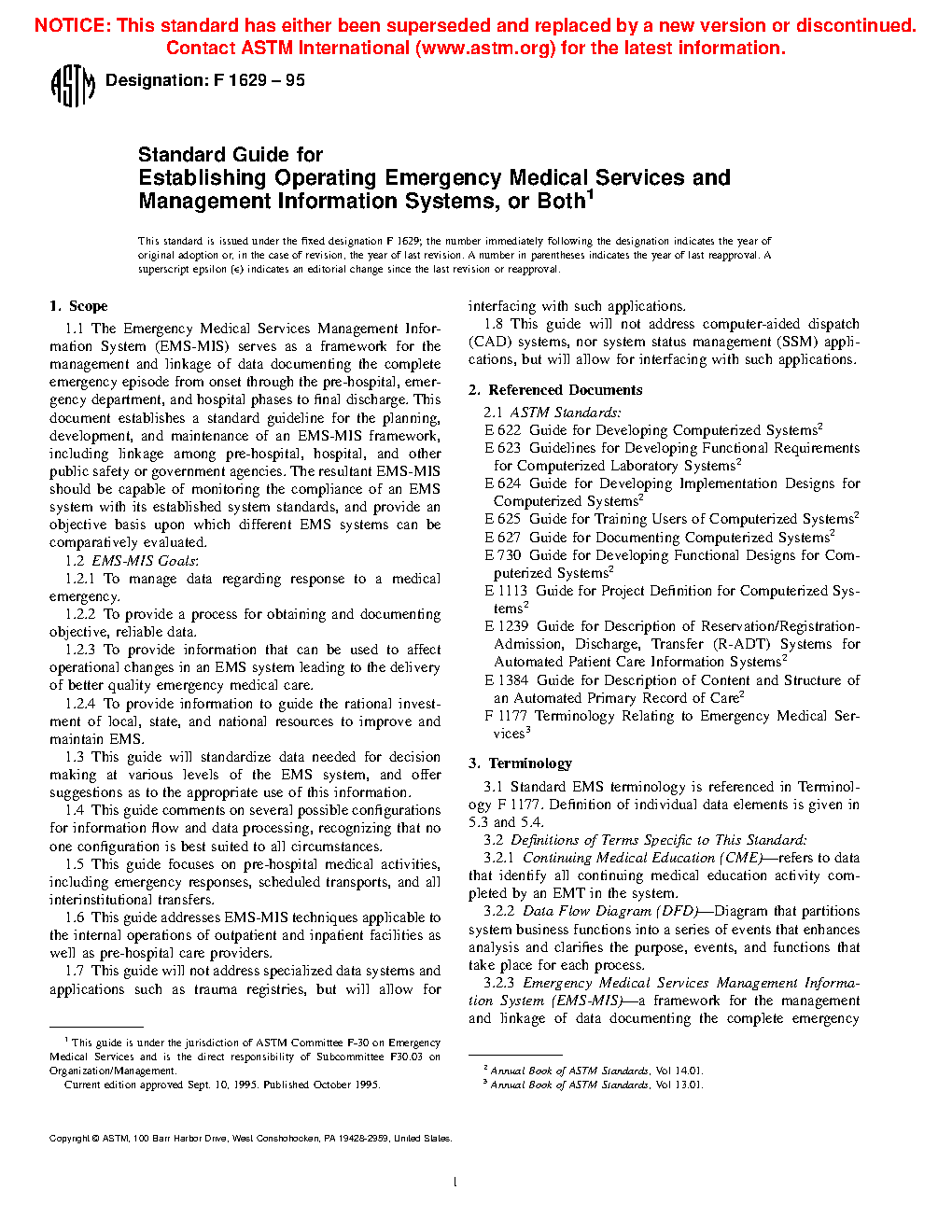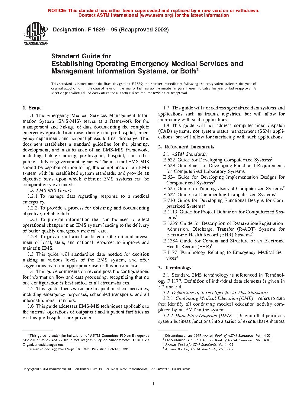 1.6 This guide addresses EMS-MIS techniques applicable to the internal operations of outpatient and inpatient facilities as well as pre-hospital care providers.