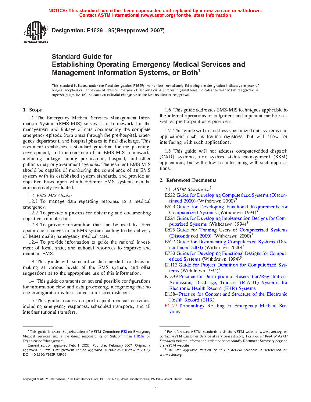 1.1 The Emergency Medical Services Management Information System (EMS-MIS) serves as a framework for the management and linkage of data documenting the complete emergency episode from onset through the pre-hospital, emergency department, and hospital phases to final discharge. This document establishes a standard guideline for the planning, development, and maintenance of an EMS-MIS framework, including linkage among pre-hospital, hospital, and other public safety or government agencies. The resultant EMS-MIS should be capable of monitoring the compliance of an EMS system with its established system standards, and provide an objective basis upon which different EMS systems can be comparatively evaluated.