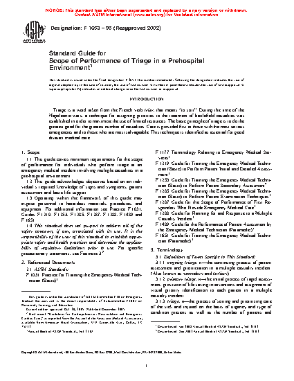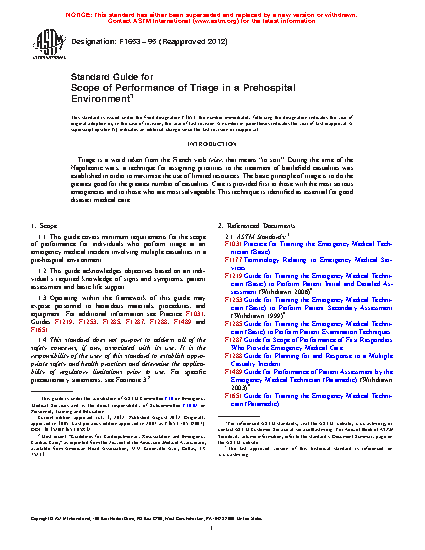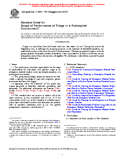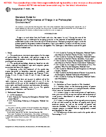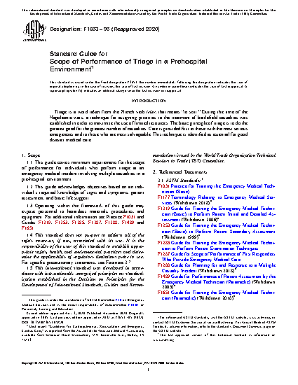 1.1 This guide covers minimum requirements for the scope of performance for individuals who perform triage at an emergency medical incident involving multiple casualties in a pre-hospital environment.