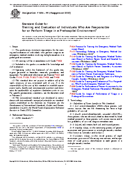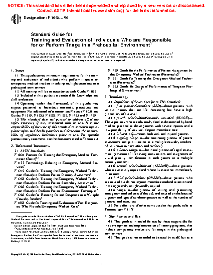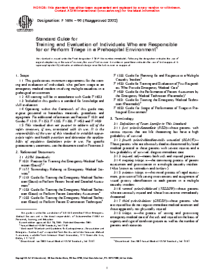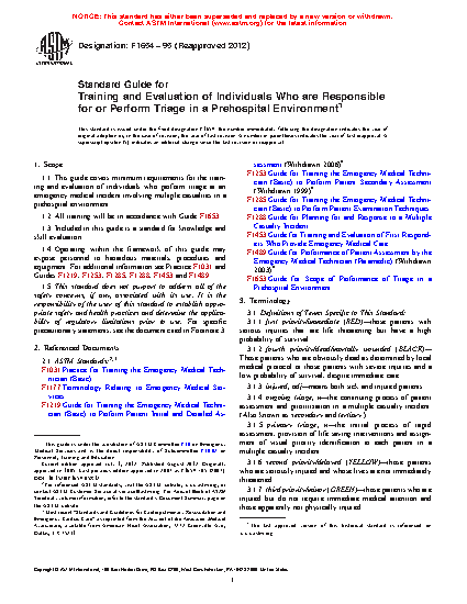 1.1 This guide covers minimum requirements for the training and evaluation of individuals who perform triage at an emergency medical incident involving multiple casualties in a prehospital environment.