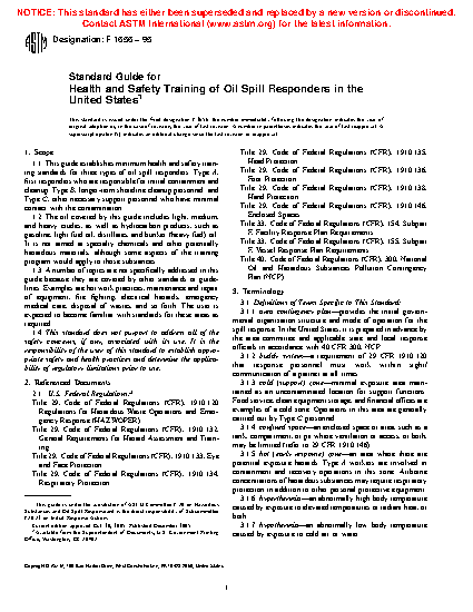 1.1 This guide establishes minimum health and safety training standards for three types of oil spill responders: Type
