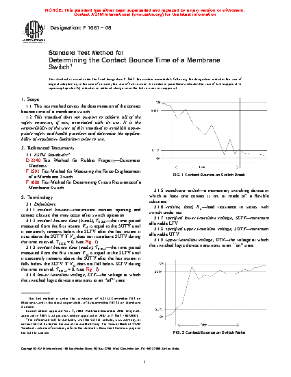 1.1 This test method covers the determination of the contact bounce time of a membrane switch.