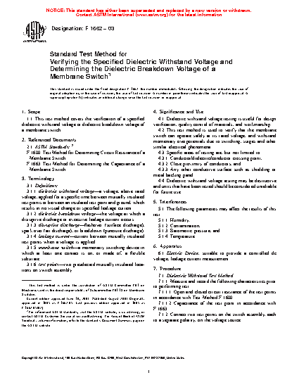 1.1 This test method covers the verification of a specified dielectric withstand voltage or dielectric breakdown voltage of a membrane switch or printed electronic device.