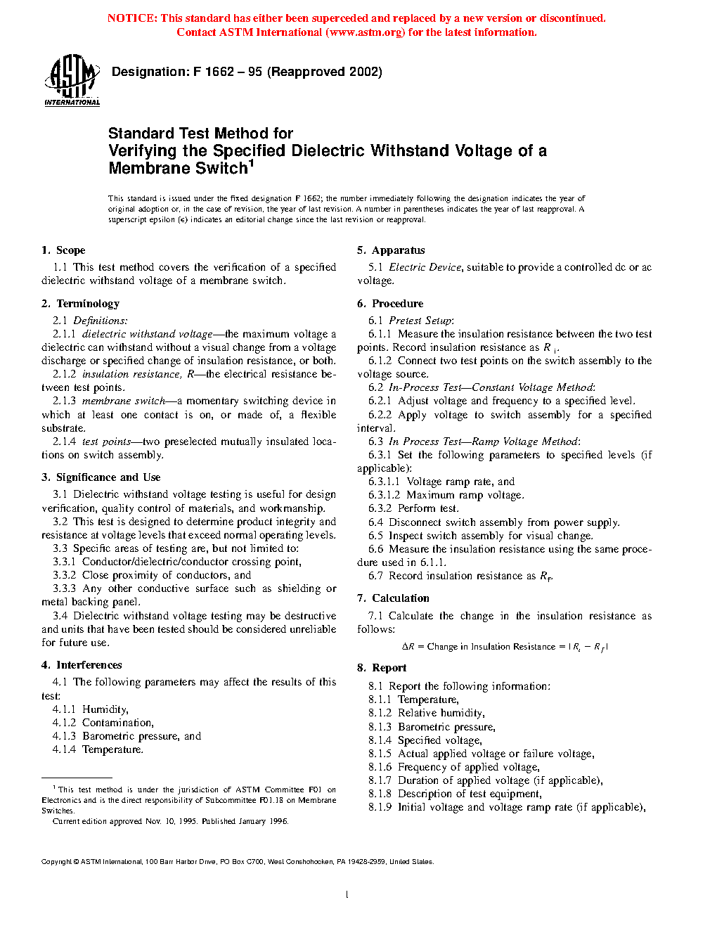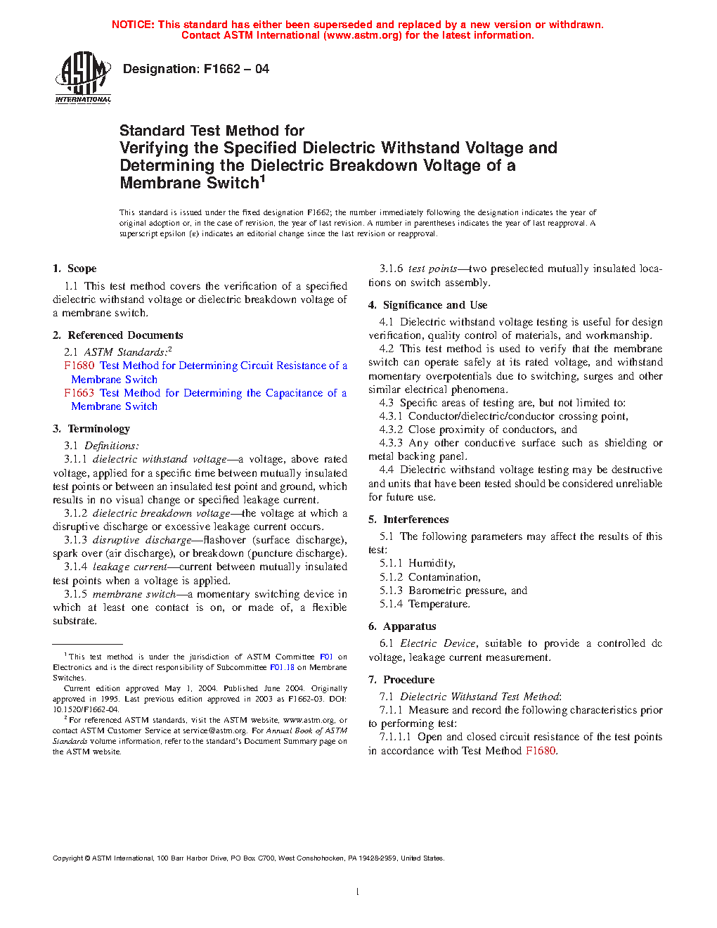 4.2 This test method is used to verify that the membrane switch or printed electronic device can operate safely at its rated voltage, and withstand momentary overpotentials due to switching, surges and other similar electrical phenomena.