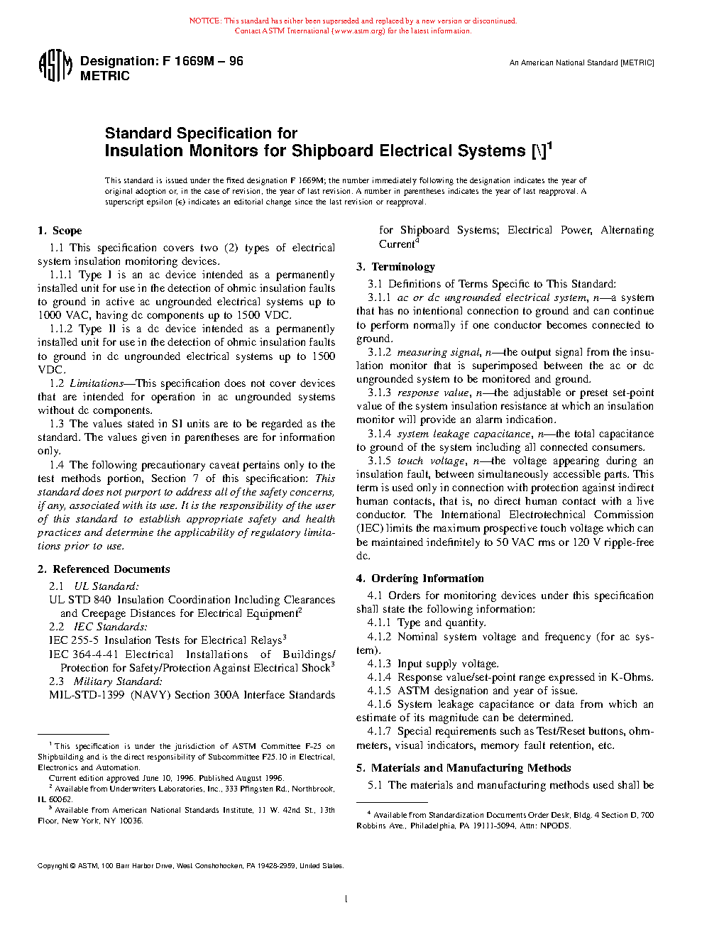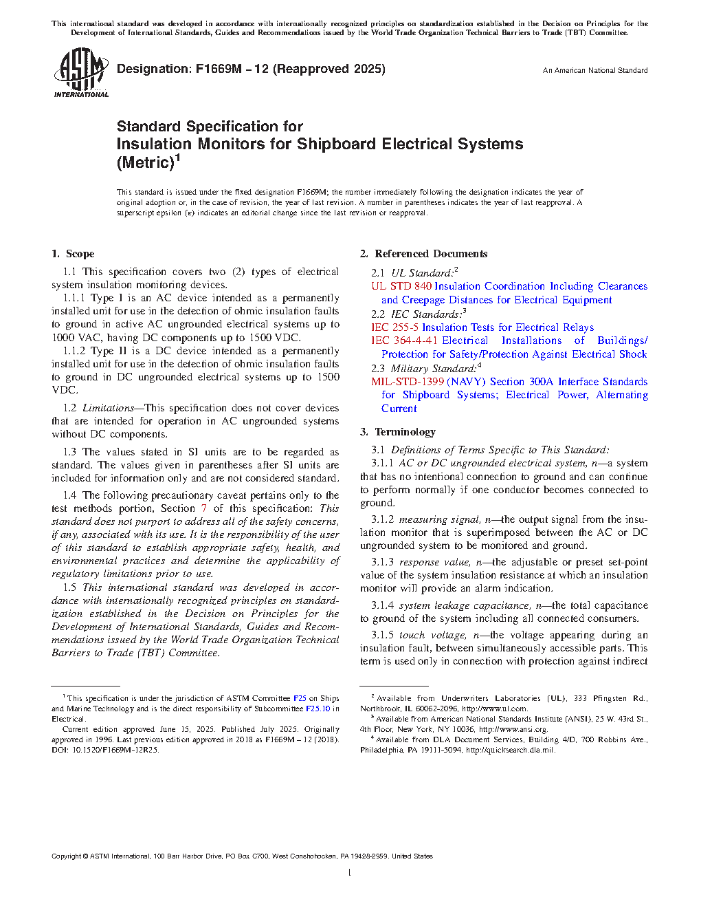 1.1 This specification covers two (2) types of electrical system insulation monitoring devices.