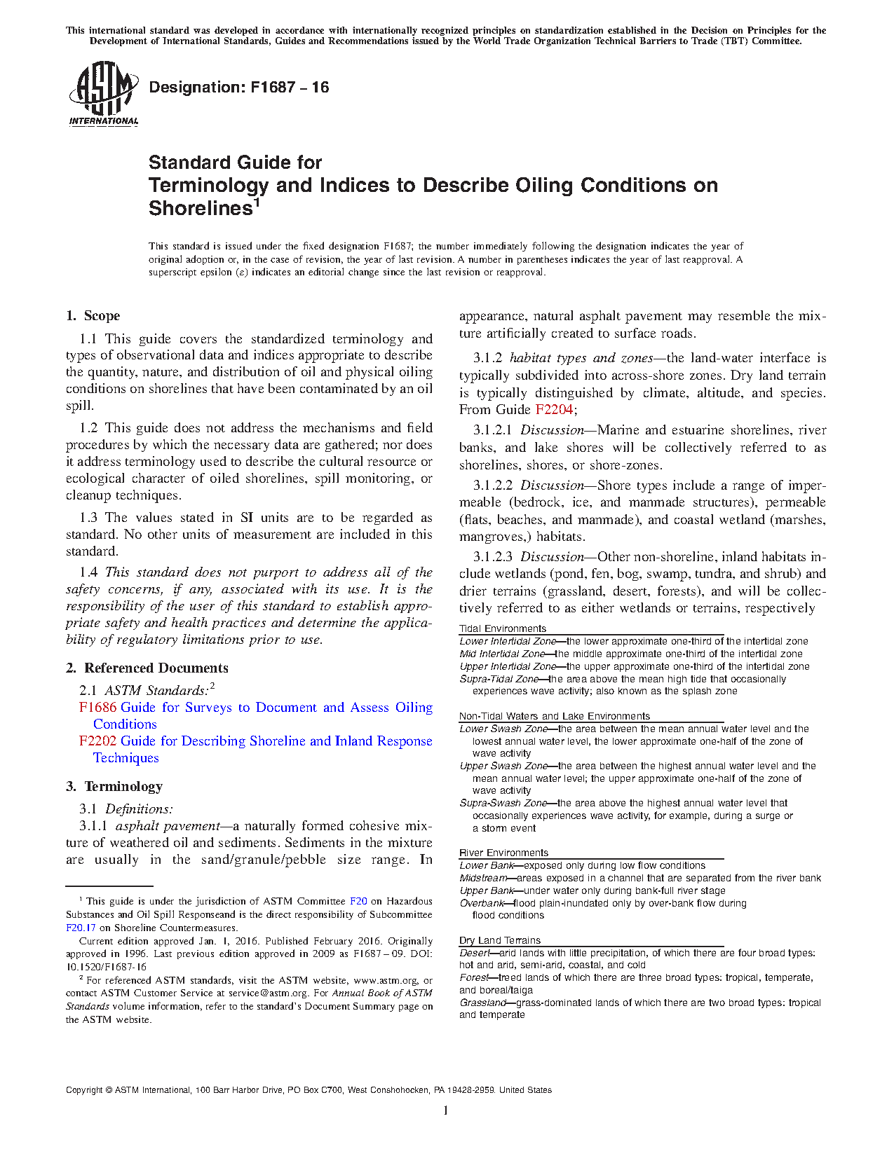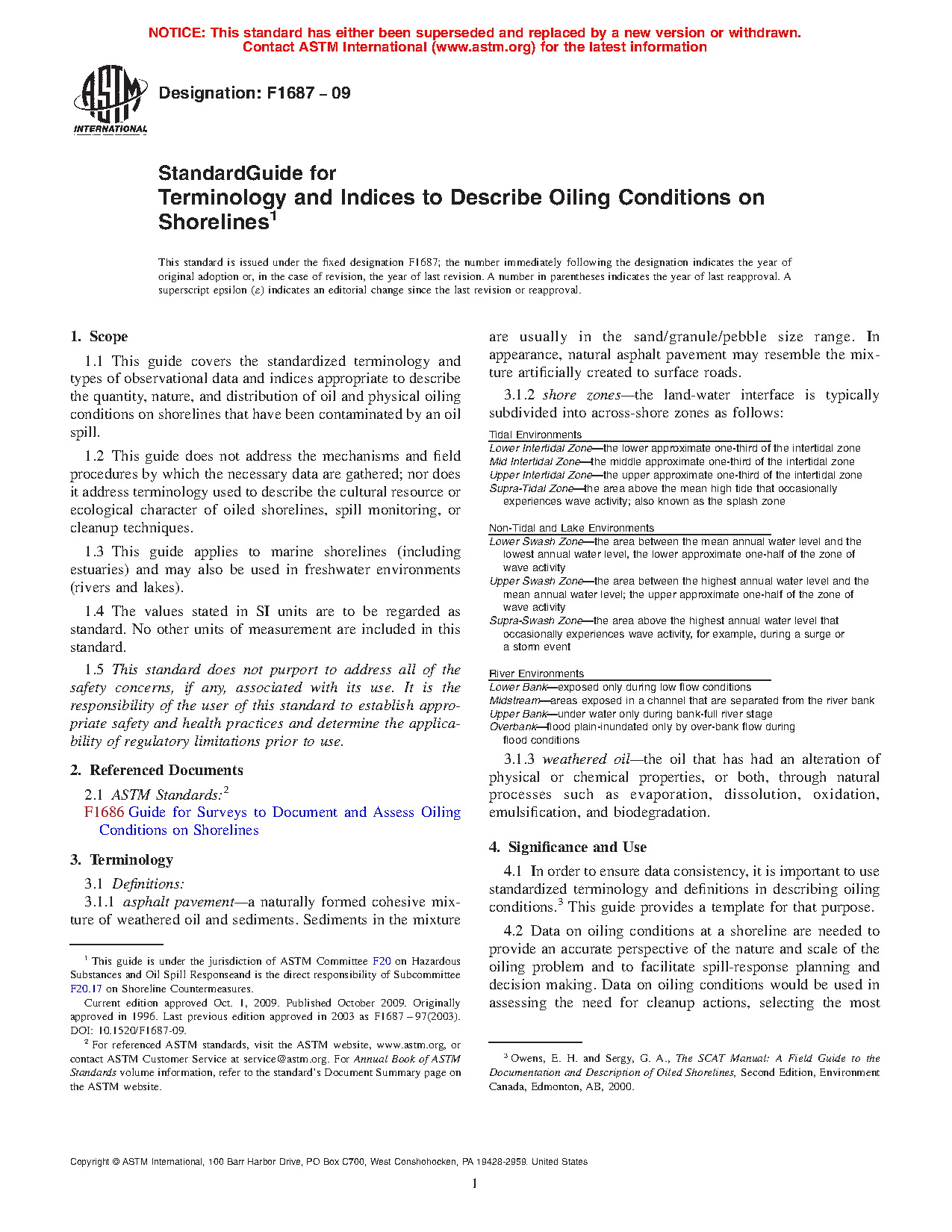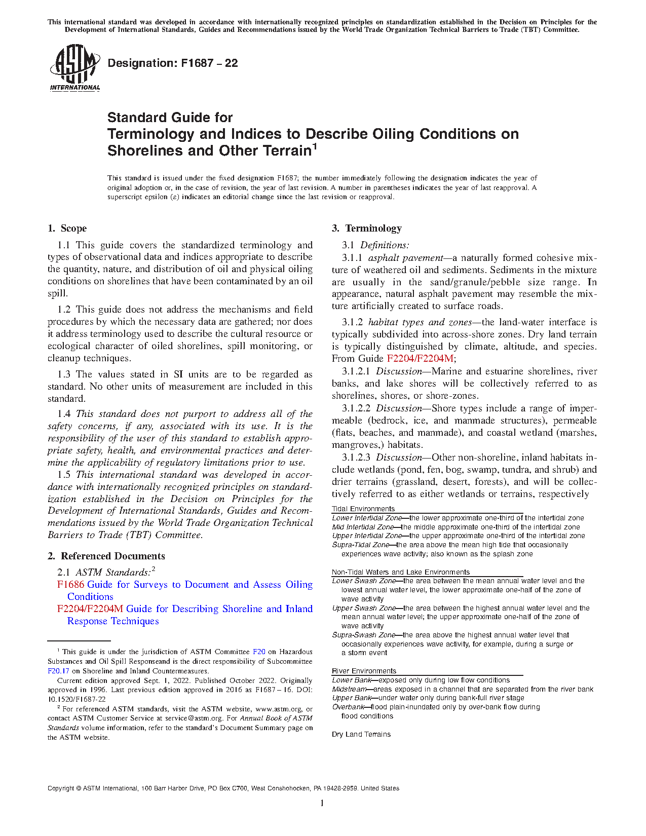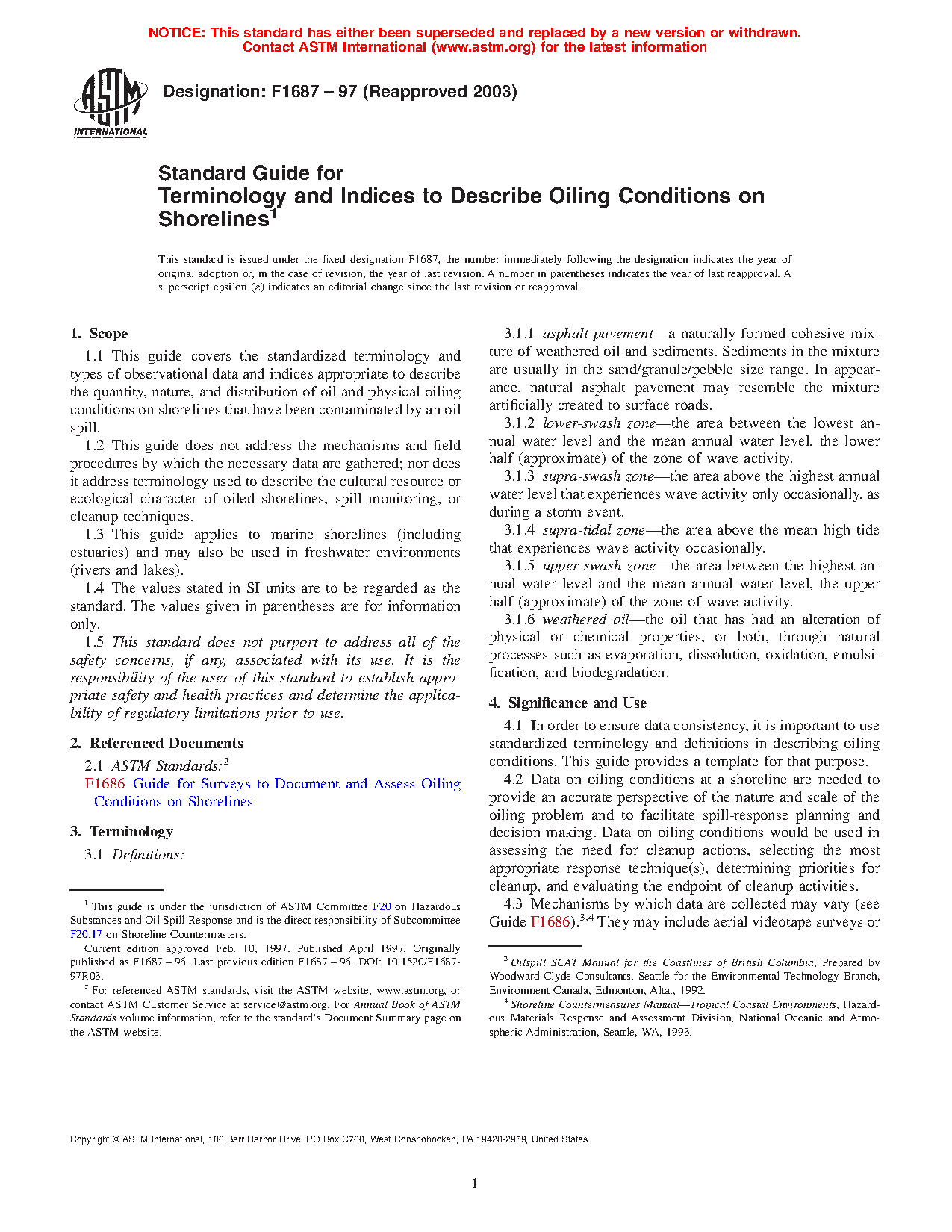 4.1 In order to ensure data consistency, it is important to use standardized terminology and definitions in describing oiling conditions (1)3. This guide provides a template for that purpose.