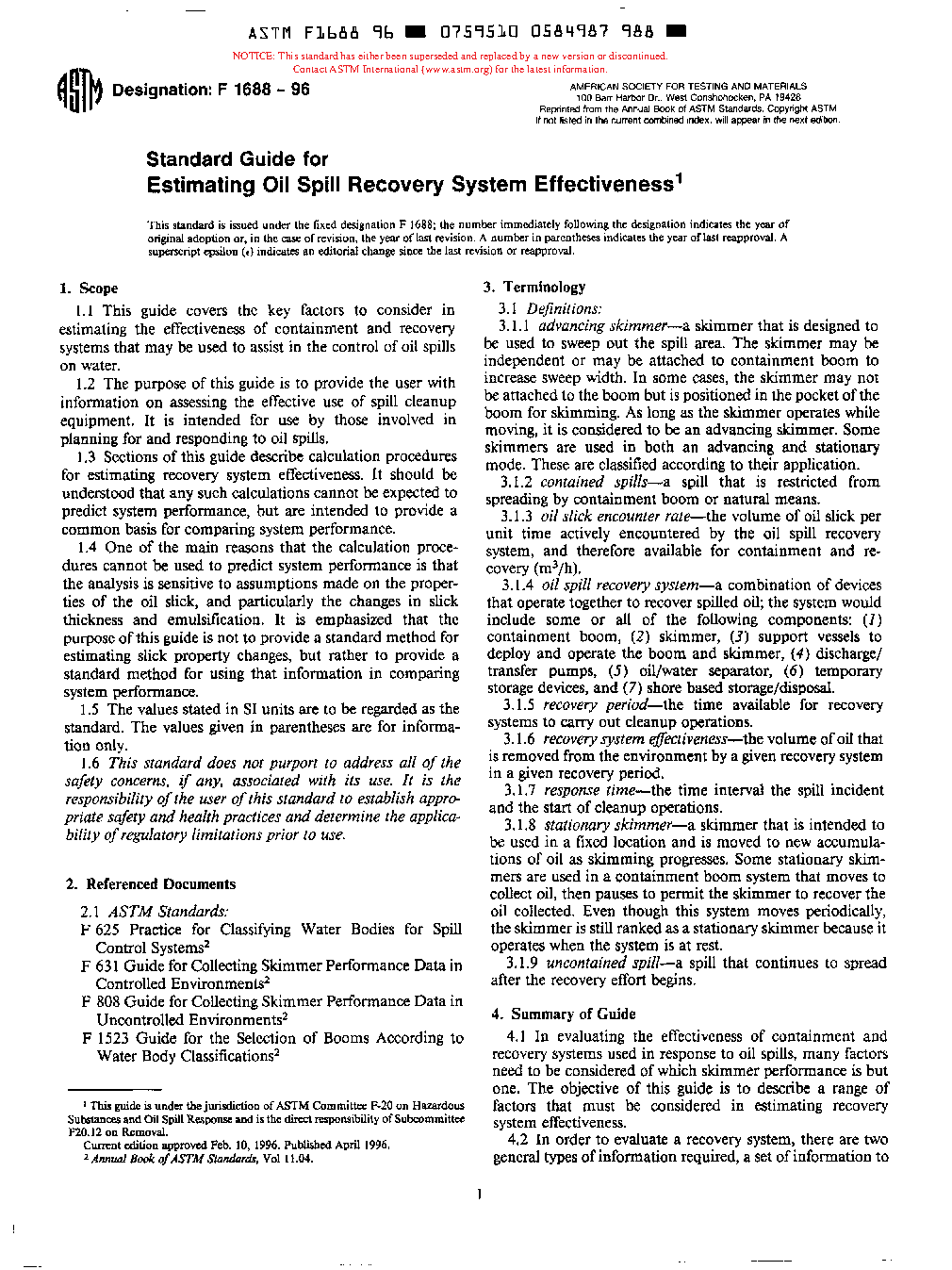 1.2 The purpose of this guide is to provide the user with information on assessing the effective use of spill cleanup equipment. It is intended for use by those involved in planning for and responding to oil spills.