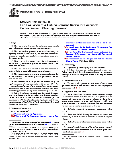 1.1 This test method covers the turbine-powered nozzle used in household central vacuum cleaning systems.