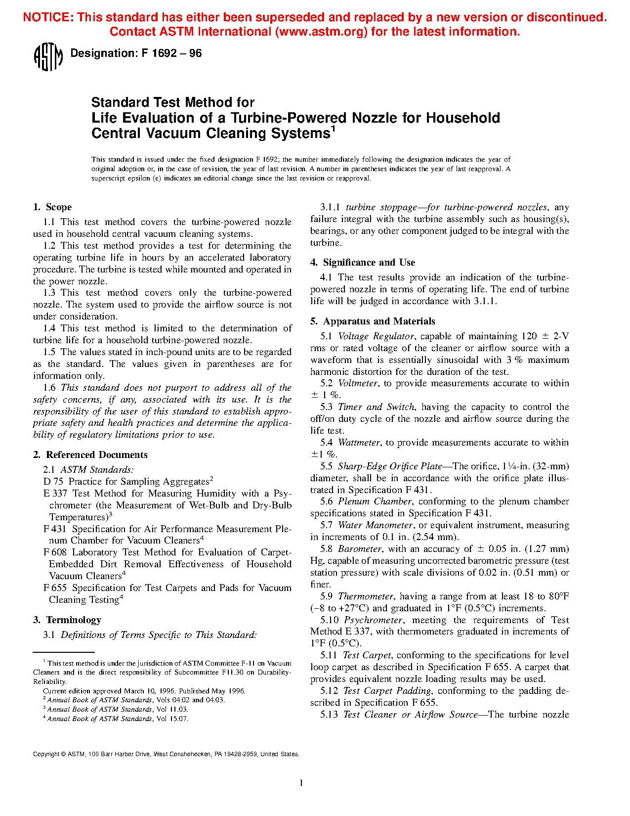 1.4 This test method is limited to the determination of turbine life for a household turbine-powered nozzle.