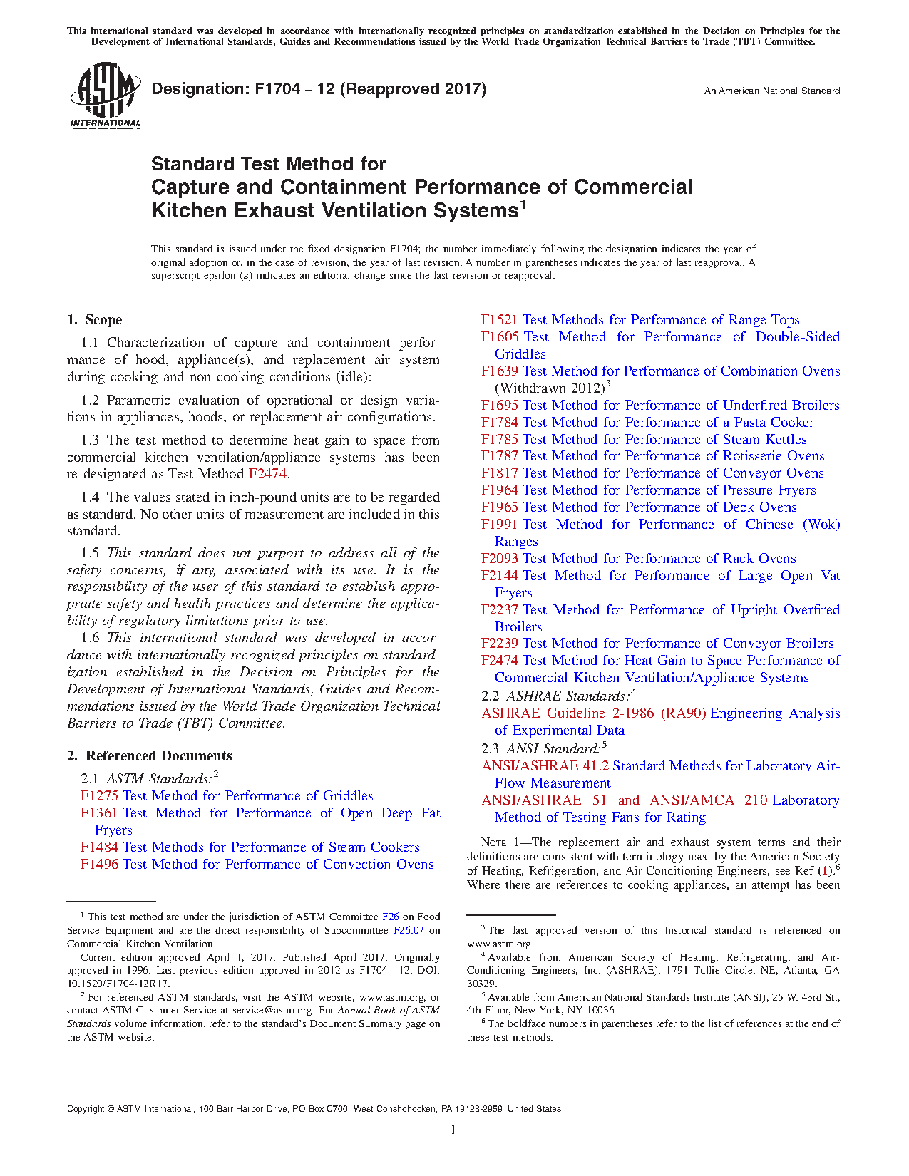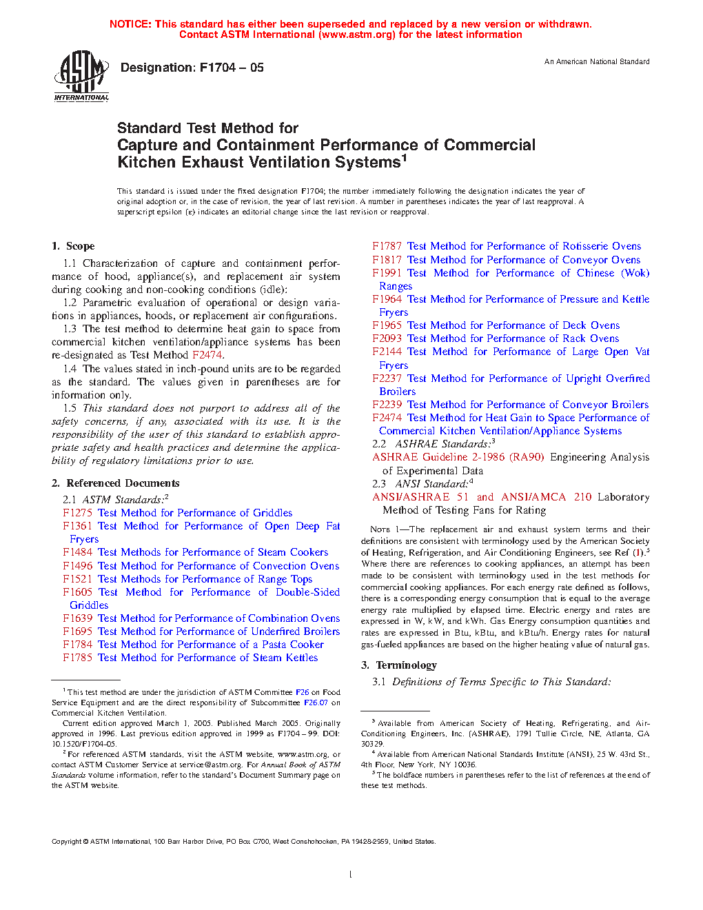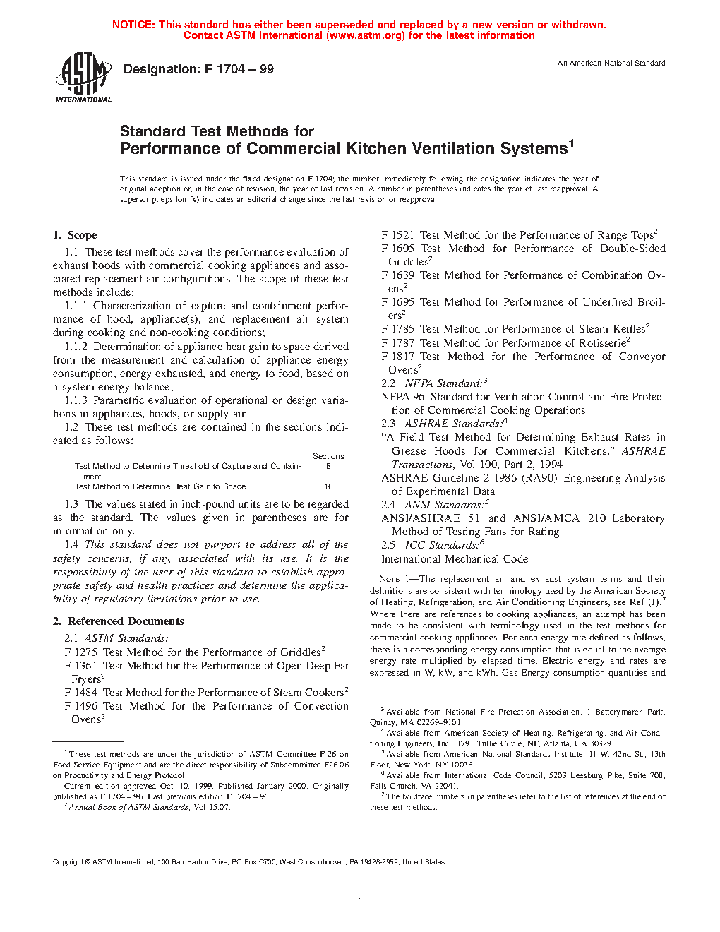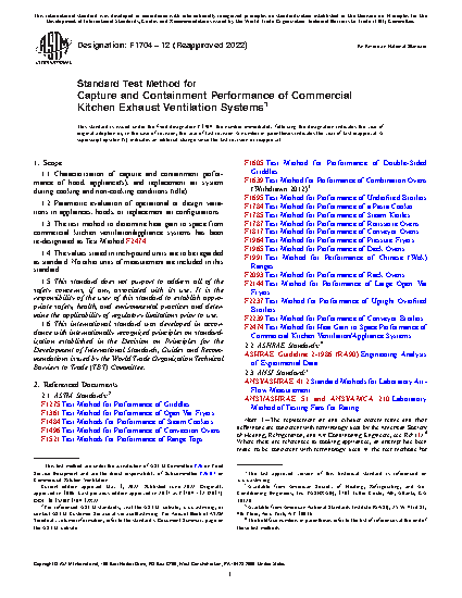 1.3 The test method to determine heat gain to space from commercial kitchen ventilation/appliance systems has been re-designated as Test Method F2474.