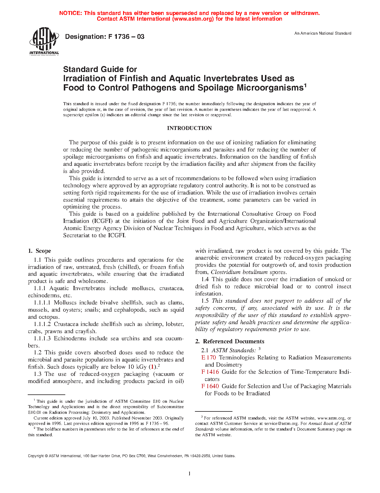 1.1 This guide outlines procedures and operations for the irradiation of raw, untreated, fresh (chilled), or frozen finfish and aquatic invertebrates, while ensuring that the irradiated product is safe and wholesome.