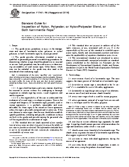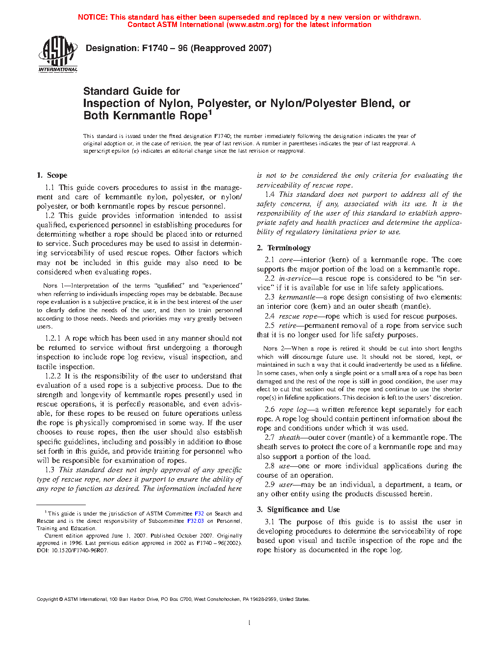 1.1 This guide covers procedures to assist in the management and care of kernmantle nylon, polyester, or nylon/polyester, or both kernmantle ropes by rescue personnel.