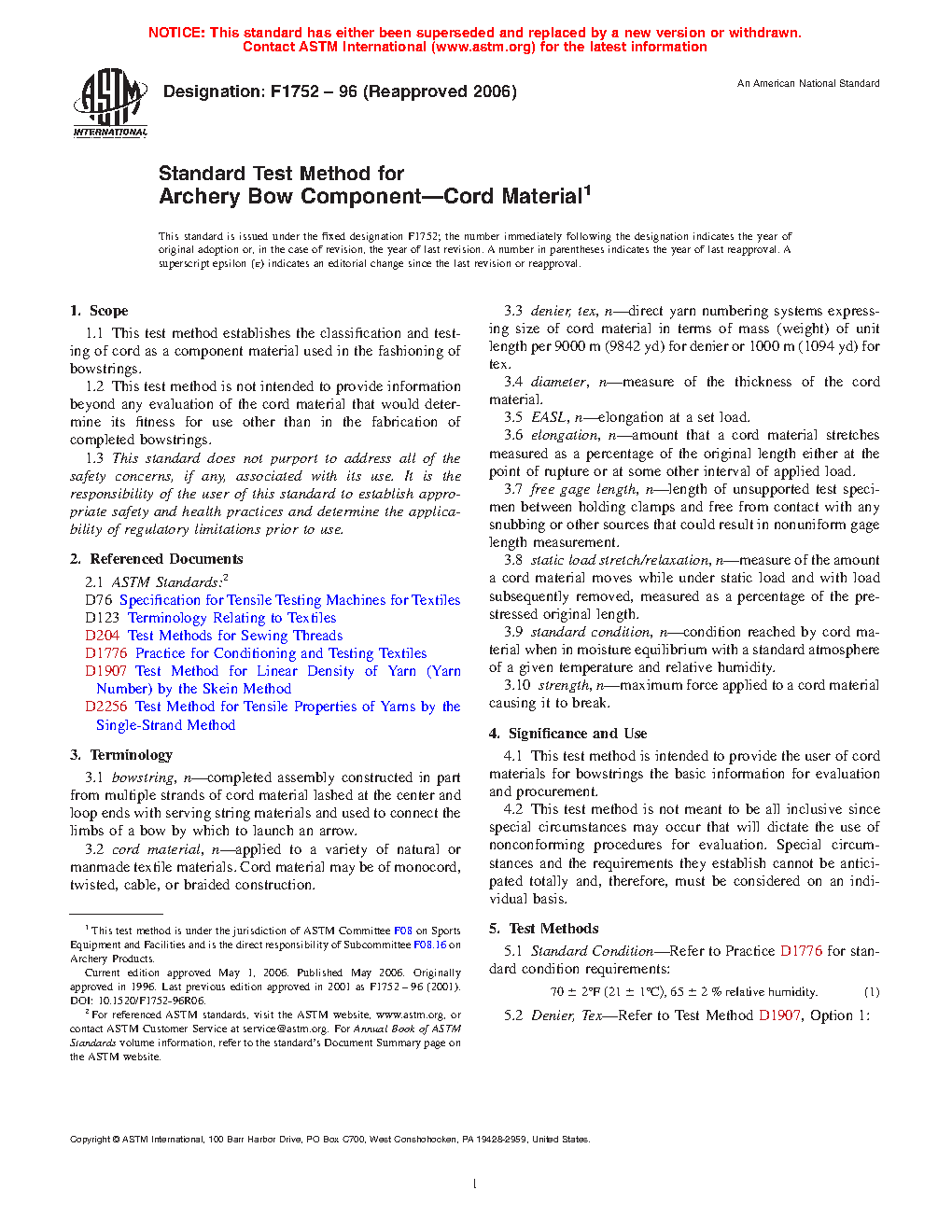 1.2 This test method is not intended to provide information beyond any evaluation of the cord material that would determine its fitness for use other than in the fabrication of completed bowstrings.