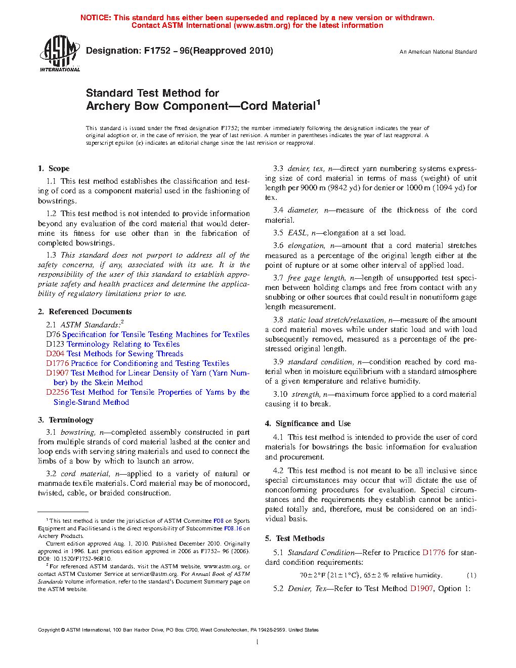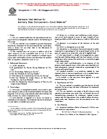 1.2 This test method is not intended to provide information beyond any evaluation of the cord material that would determine its fitness for use other than in the fabrication of completed bowstrings.