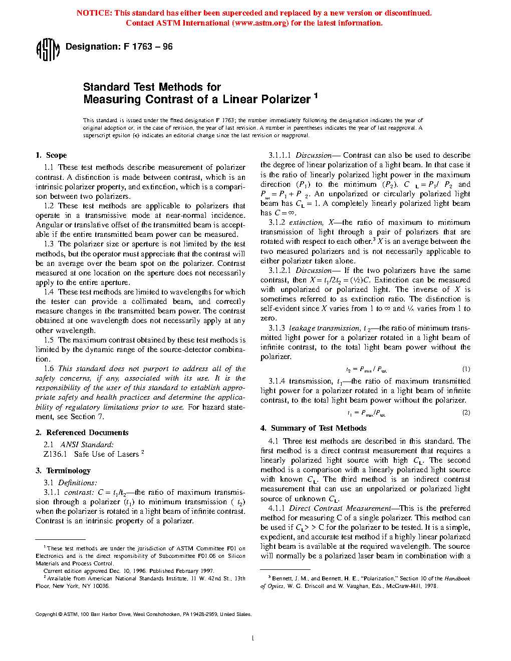 1.1 these test methods describe measurement of polarizer contrast. A distinction is made between contrast, which is an intrinsic polarizer property, and extinction, which is a comparison between two polarizers.