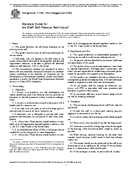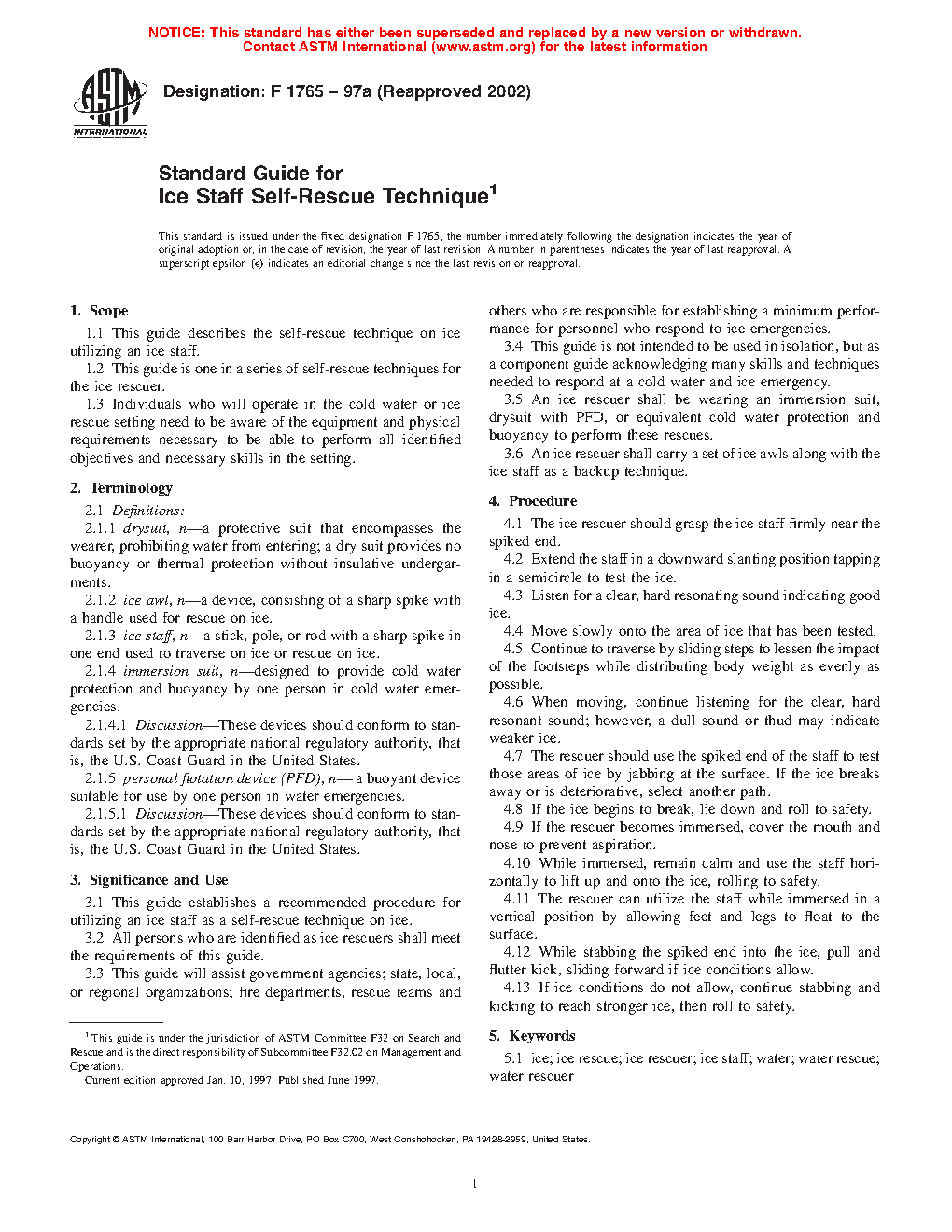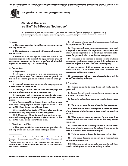 3.1 This guide establishes a recommended procedure for utilizing an ice staff as a self-rescue technique on ice.