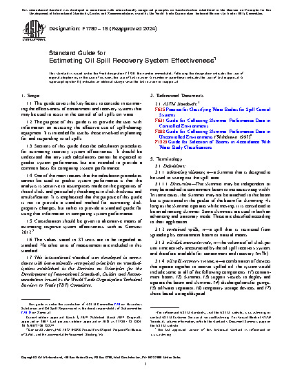 1.2 The purpose of this guide is to provide the user with information on assessing the effective use of spill-cleanup equipment. It is intended for use by those involved in planning for and responding to oil spills.