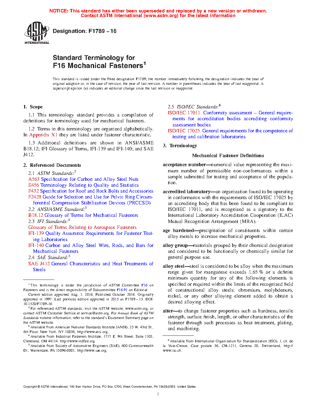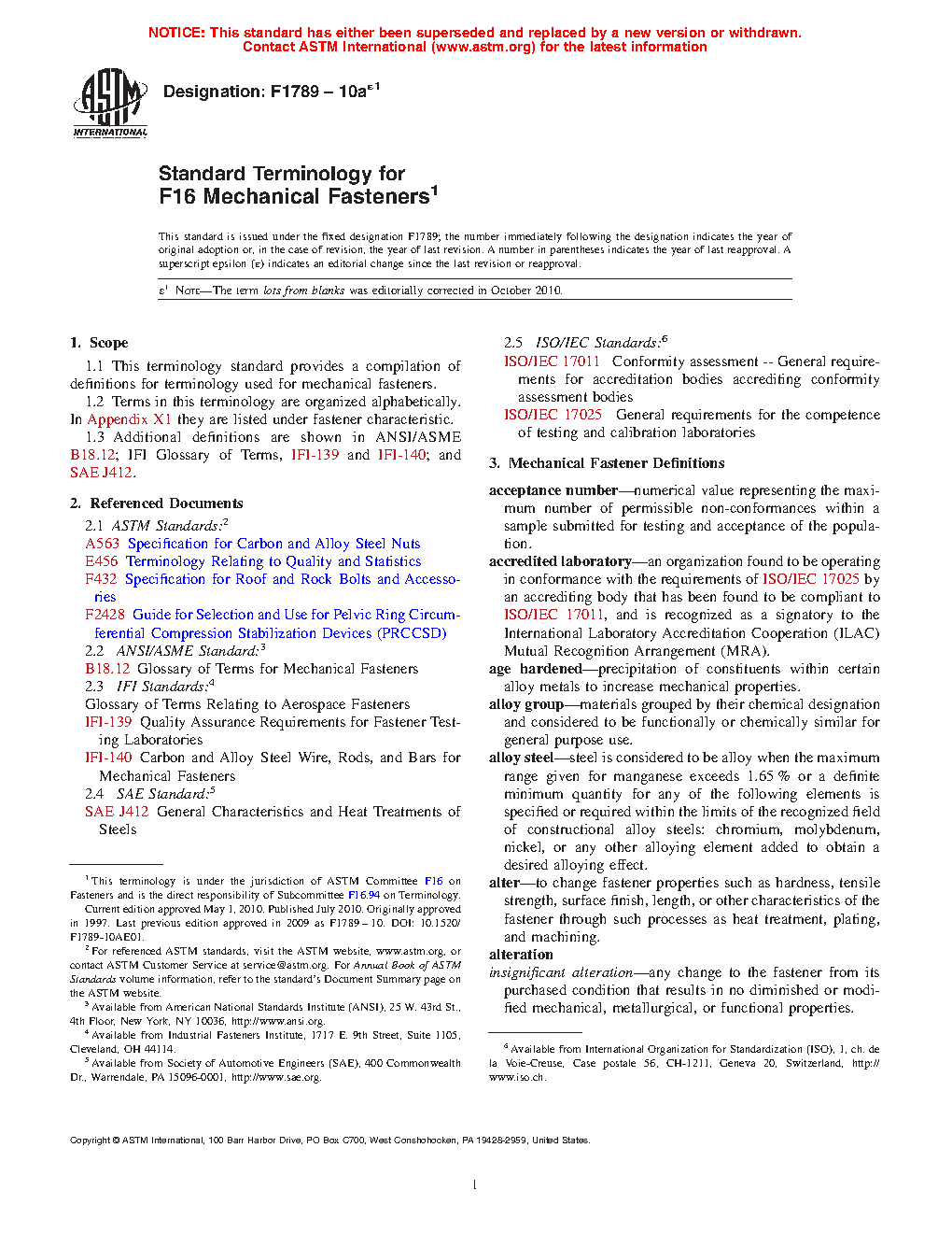 1.1 This terminology standard provides a compilation of definitions for terminology used for mechanical fasteners.