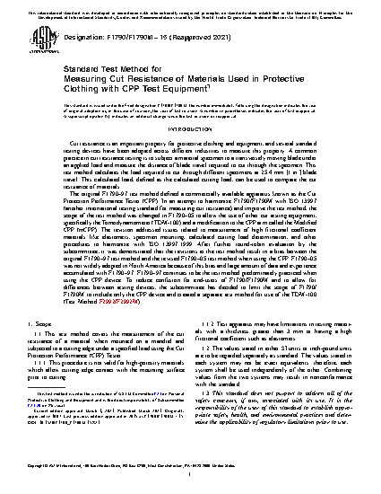 1.1 This test method covers the measurement of the cut resistance of a material when mounted on a mandrel and subjected to a cutting edge under a specified load using the Cut Protection Performance (CPP) Tester.